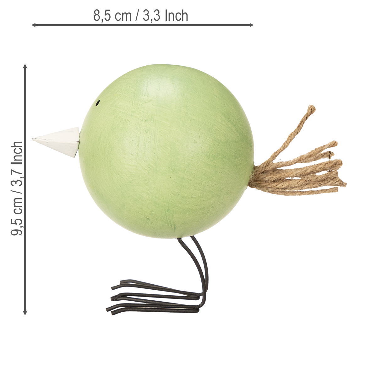 Este set consta de tres pollitos en amarillo, rosa y verde. Su superficie ligeramente brillante aporta un toque vibrante sin resultar recargado. Con 9,5 cm de alto y 8,5 cm de diámetro, son lo suficientemente compactos para exhibirlos de forma versátil, ya sea en estanterías, aparadores o directamente sobre la mesa. Los alegres colores son particularmente armoniosos y combinan a la perfección con otras decoraciones de primavera o Pascua. Para un look elegante y natural, estos pollitos pueden incluso combinarse con delicados arreglos florales u otros elementos de madera. ¡Un auténtico todoterreno para tu decoración!