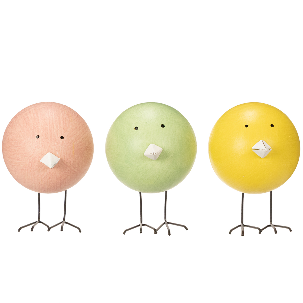 ¿Buscas una forma ingeniosa de añadir un toque divertido y alegre a tu hogar? Nuestras figuras decorativas redondas de pollitos alegrarán cualquier habitación al instante. Ya sean una encantadora decoración primaveral para la mesa del comedor, un toque colorido para una mesa festiva o un dulce punto de atracción en la habitación de un niño, estas tres pequeñas figuras en amarillo, rosa y verde seguro que alegrarán a todos. La combinación de madera para los cuerpos y metal para los picos y las patas les da a los pollitos una base robusta y un toque de diseño moderno.