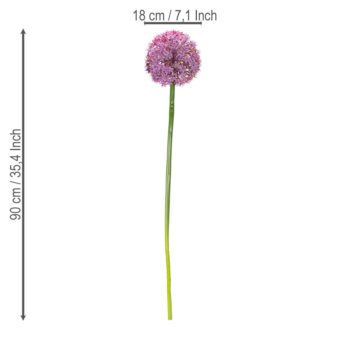 ¿Buscas una flor que llame la atención en tu sala de estar o espacio de trabajo? ¡Te encantará nuestra flor artificial Allium! Esta flor decorativa combina elegancia pura con belleza atemporal, aportando un toque de estilo a cualquier estancia. Con una altura de 90 cm, destaca en aparadores, mesas o jarrones altos. Su cabeza esférica de color lila es especialmente llamativa, con un aspecto increíblemente realista y detalles meticulosos. Hecha de poliéster y plástico de alta calidad, es duradera, lo que la convierte en un elemento decorativo de confianza.