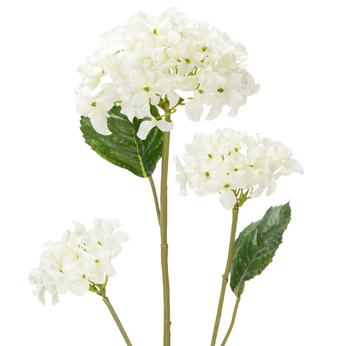 ¿Alguna vez te has preguntado cómo añadir un toque elegante y atemporal a tu hogar con el mínimo esfuerzo? ¡Entonces las hortensias artificiales podrían ser justo lo que buscas! Esta flor artificial blanca impresiona por su apariencia engañosamente realista y su versatilidad. Ya sea como elemento destacado en espacios modernos, como parte de un elegante arreglo de mesa o como un toque impresionante en áreas de recepción, esta flor duradera y decorativa se integra a la perfección en cualquier ambiente. Tres exuberantes flores y dos hojas verdes adornan un delicado tallo, dándole al arreglo un aspecto particularmente natural. Con 80 cm de alto y 30 cm de ancho, es ideal para jarrones grandes o arreglos decorativos de suelo. Su fabricación en poliéster y plástico de alta calidad garantiza que disfrutarás de esta elegante flor artificial durante mucho tiempo.