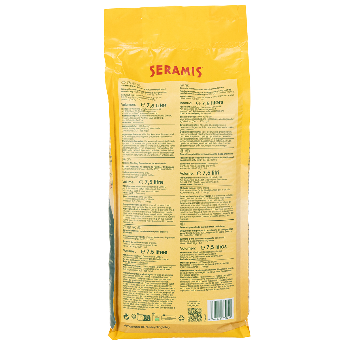 Una bolsa grande de gránulos de plantación Seramis® para plantas de interior tiene un volumen de 7,5 litros. Deje que sus plantas en macetas crezcan sanas y magníficas. ¡Tus plantas te lo agradecerán!