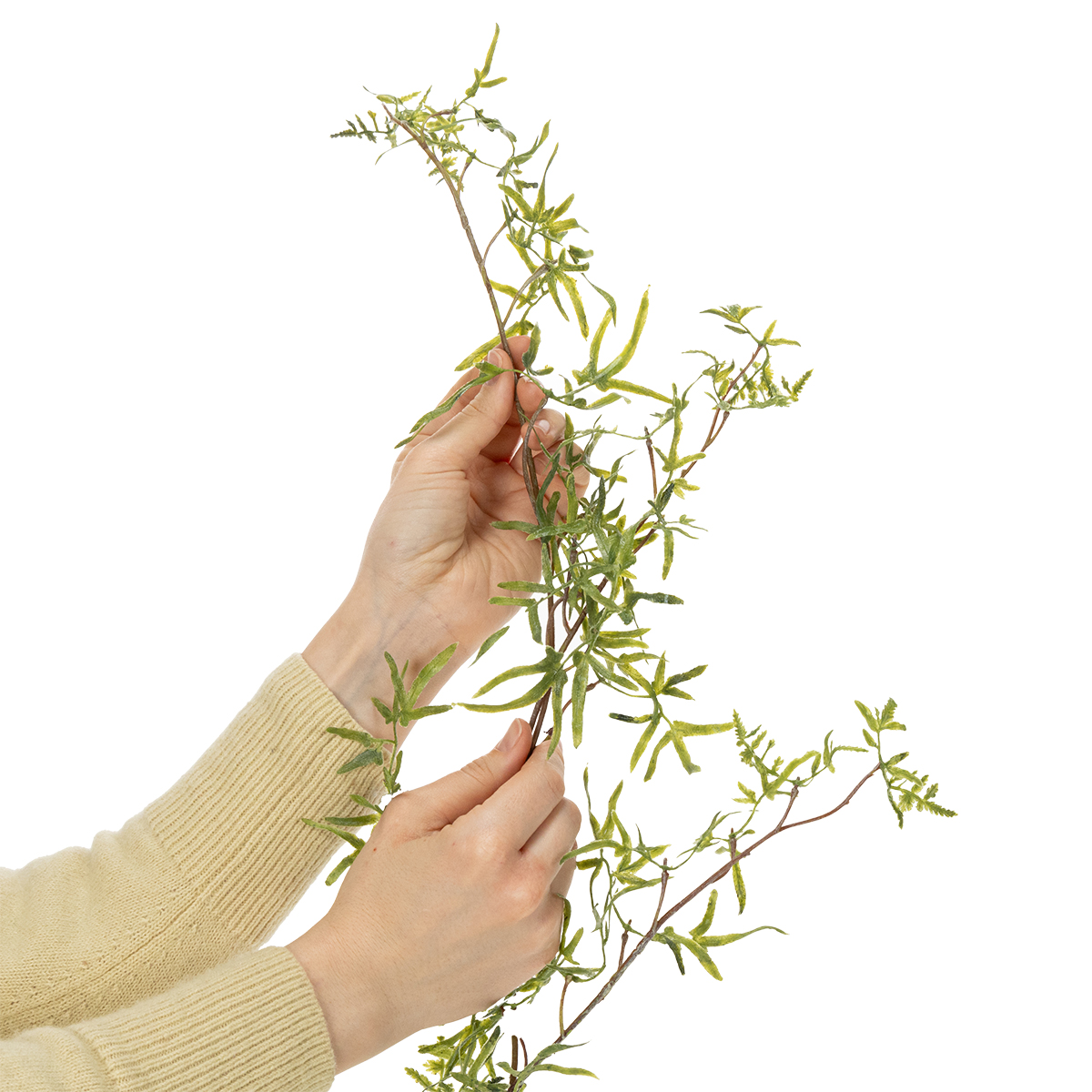 ¿Alguna vez has pensado en cómo un solo elemento decorativo podría añadir un toque de elegancia y vitalidad a toda tu habitación? Con la Guirnalda de Espárragos, lo has encontrado. Ya sea para bodas, fiestas en el jardín o cualquier ocasión festiva, esta guirnalda de espárragos ornamentales de aspecto realista añade ese toque especial. Con 170 cm de largo y su delicado color verde, es un accesorio versátil para cualquier estilo. Imagina la guirnalda colgando sobre una mesa rústica de madera en una fiesta de verano en el jardín o enmarcando delicadamente el lugar de tu boda. ¿Y lo mejor? Esta guirnalda, hecha de plástico de alta calidad, no solo tiene un aspecto realista, sino que además no requiere ningún mantenimiento. No se marchita ni necesita riego, solo mantiene una apariencia fresca y duradera. Decora con estilo y añade fácilmente toques naturales a tu diseño interior. ¿Te apetece?