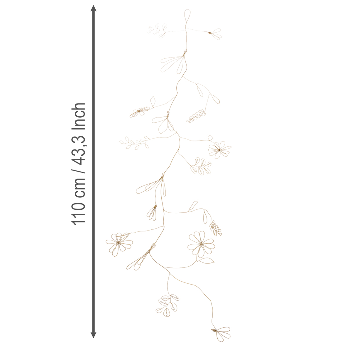 Guirnalda de flores de metal, alambre para corona de flores, decoración de verano, decoración de pared, dorado, 110 cm