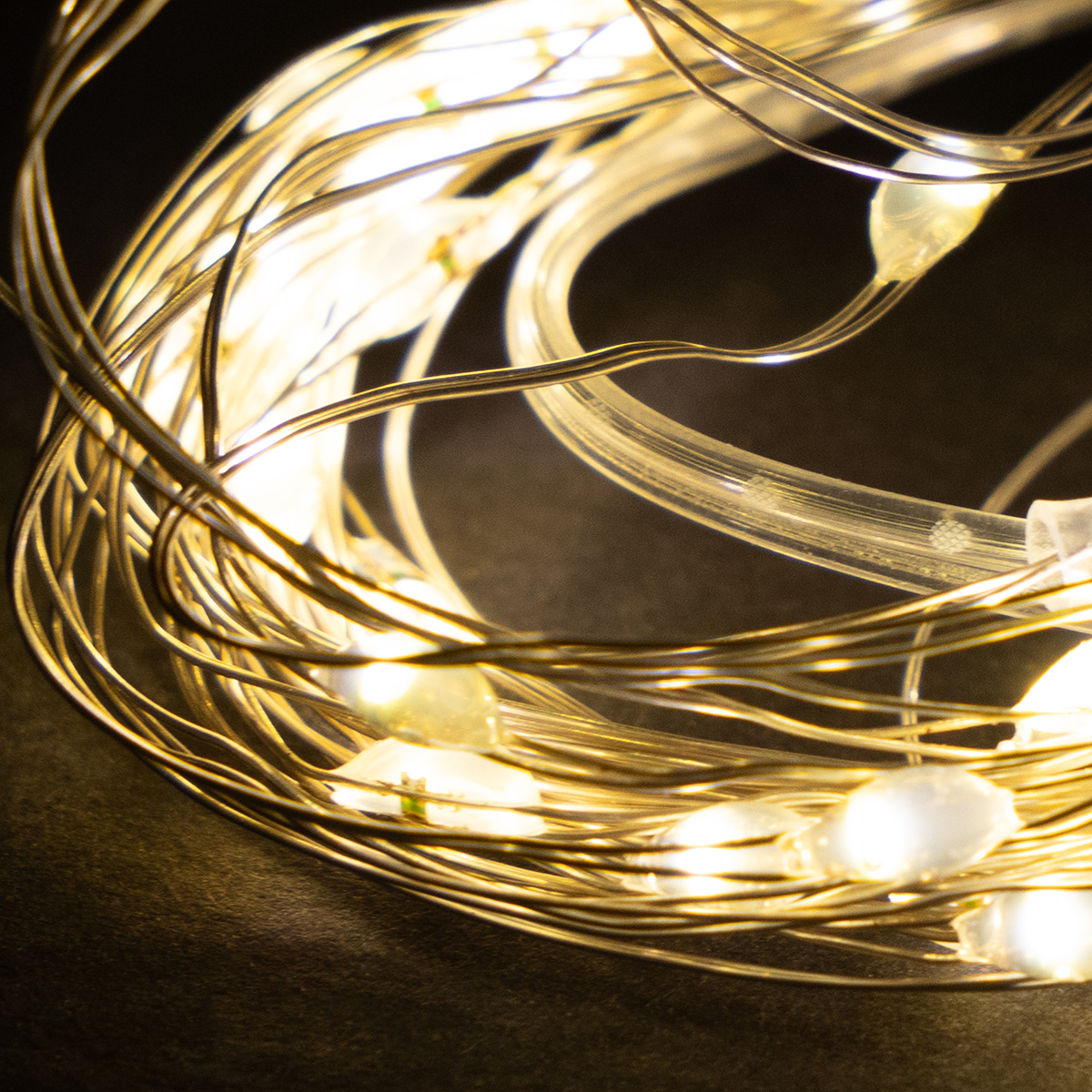 El cable de cobre flexible de las guirnaldas de luces se puede enrollar fácilmente alrededor de tallos de flores, cestas y jarrones. Esto permite crear decoraciones luminosas nuevas y originales una y otra vez.