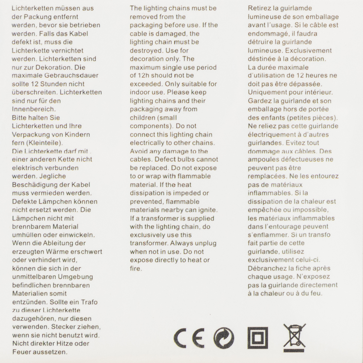 Guirnaldas de luces eléctricas: Reciclaje eléctrico de acuerdo con la normativa local.