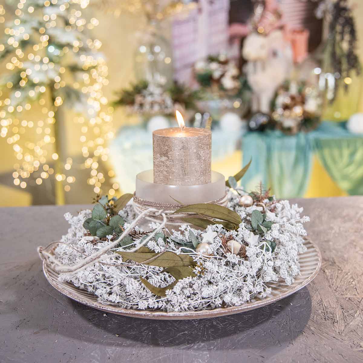 Coloque la corona de Navidad en la puerta o use la corona de flores secas como decoración de mesa. En cualquier caso, la corona de lino blanco hará más festivo tu hogar, oficina o escaparate.