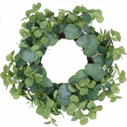 Guirnalda decorativa eucalipto verde flores blancas artificiales Ø45cm