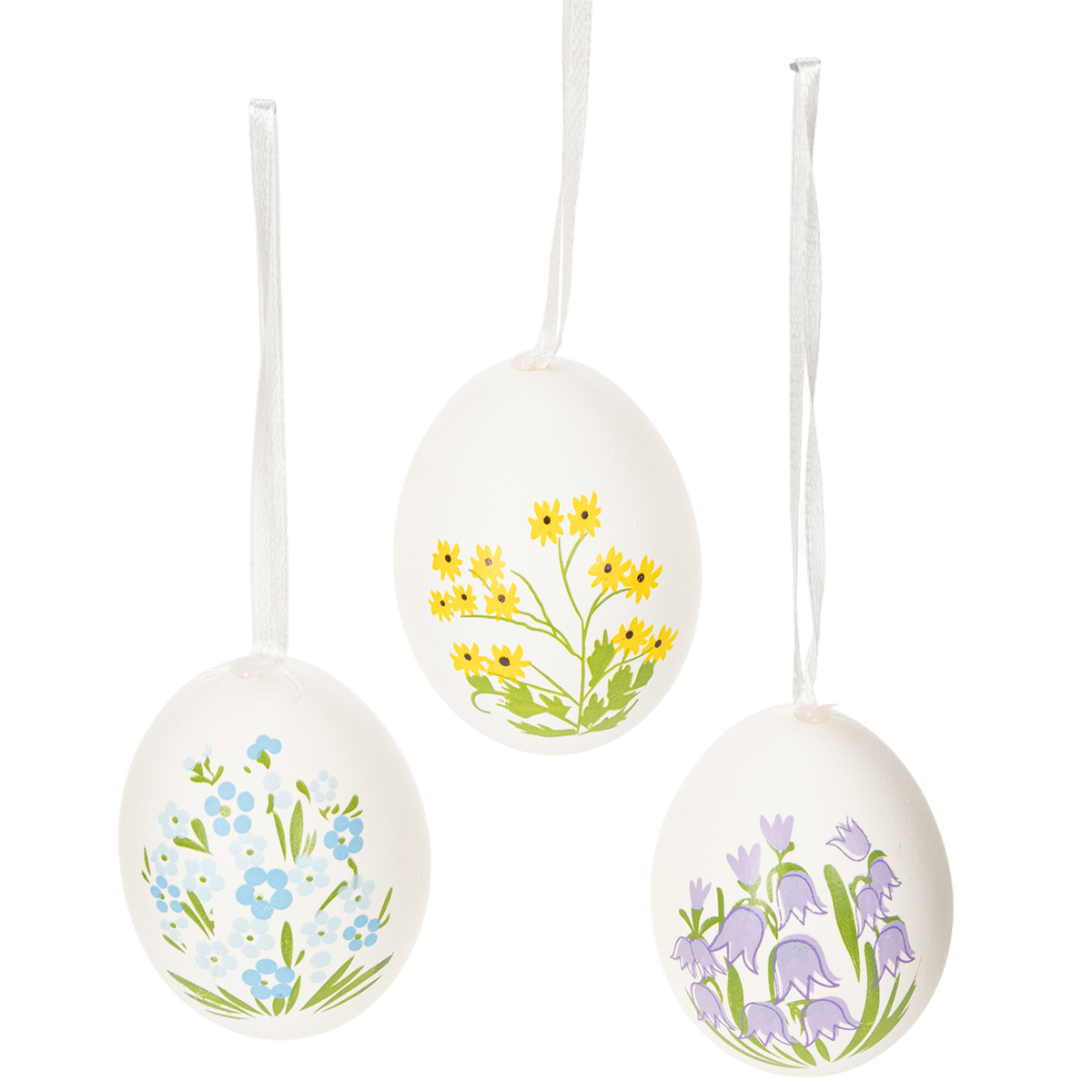 - 6 huevos de Pascua con delicados motivos florales – 3 diseños diferentes.