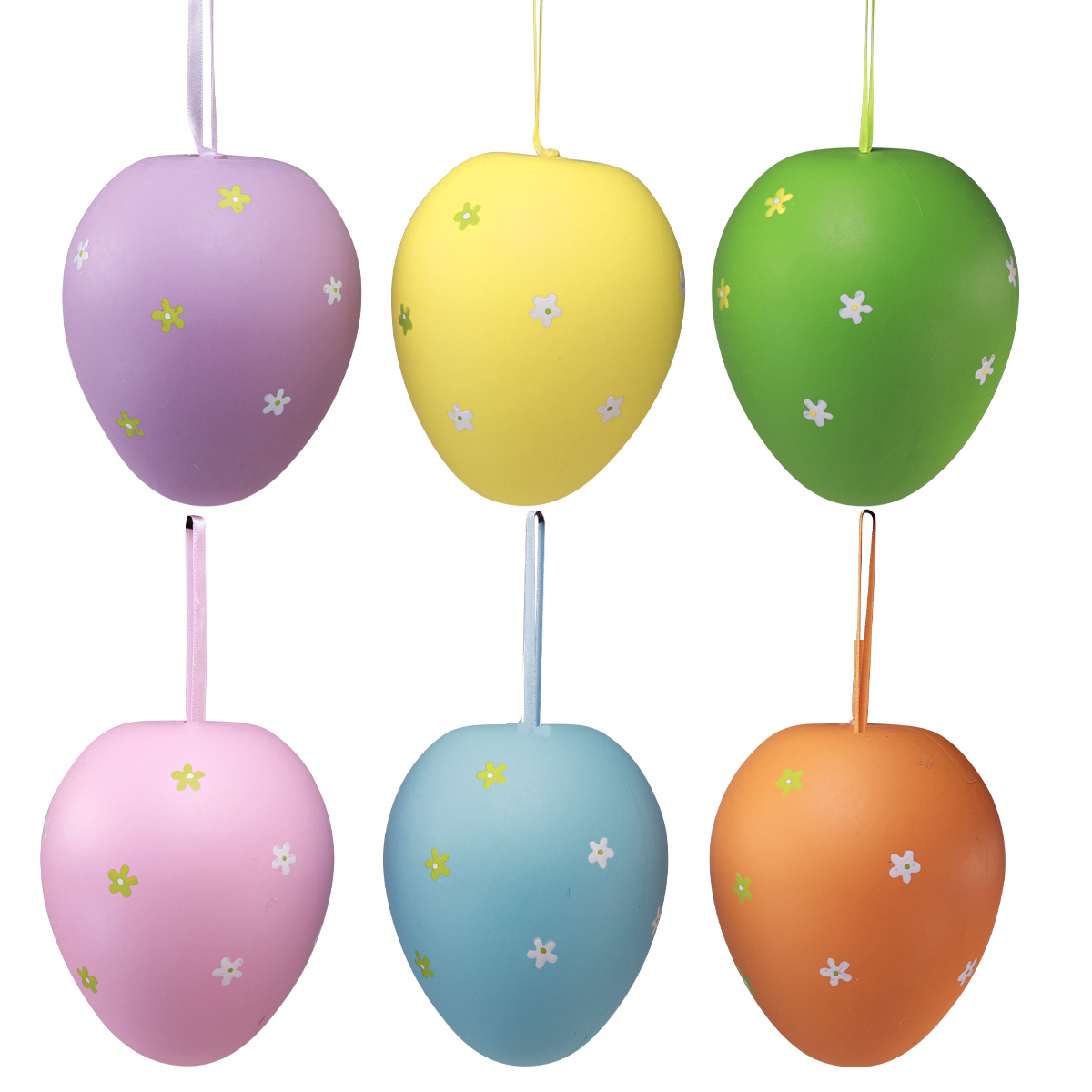 Los seis huevos de Pascua para colgar son suficientes para bañar de color su arreglo, corona o ventana. Porque con sus casi 12 centímetros de diámetro y una altura de unos buenos 14,5 centímetros, estos huevos de plástico no tienen por qué esconderse.