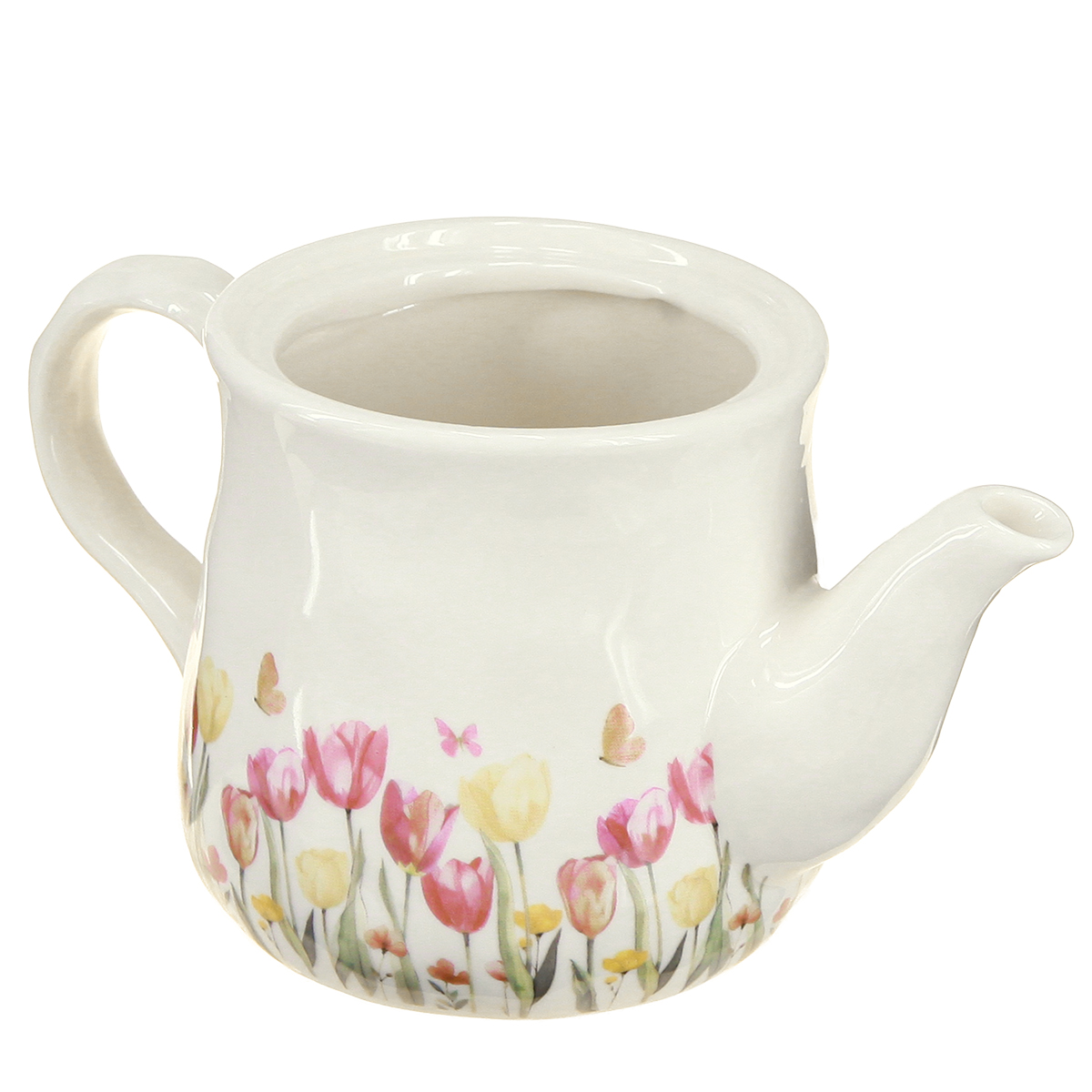 Jarra de cerámica con motivo floral para acentos primaverales en el salón 20cm