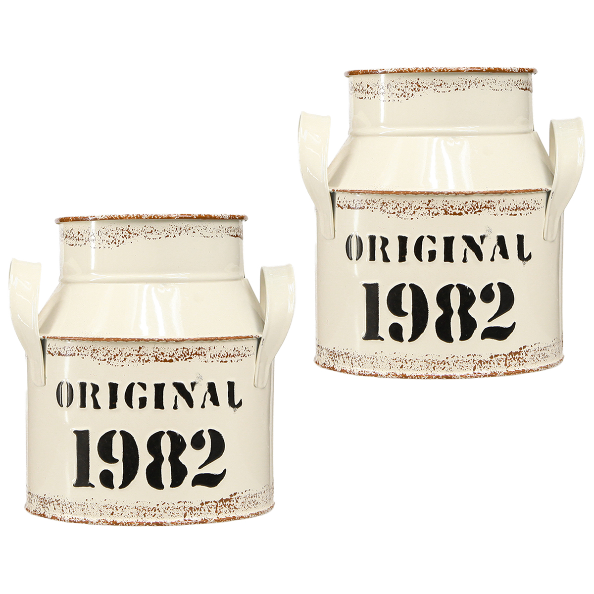 Jarra de metal decorativa "Original 1982" Crema Óxido H16cm 2uds