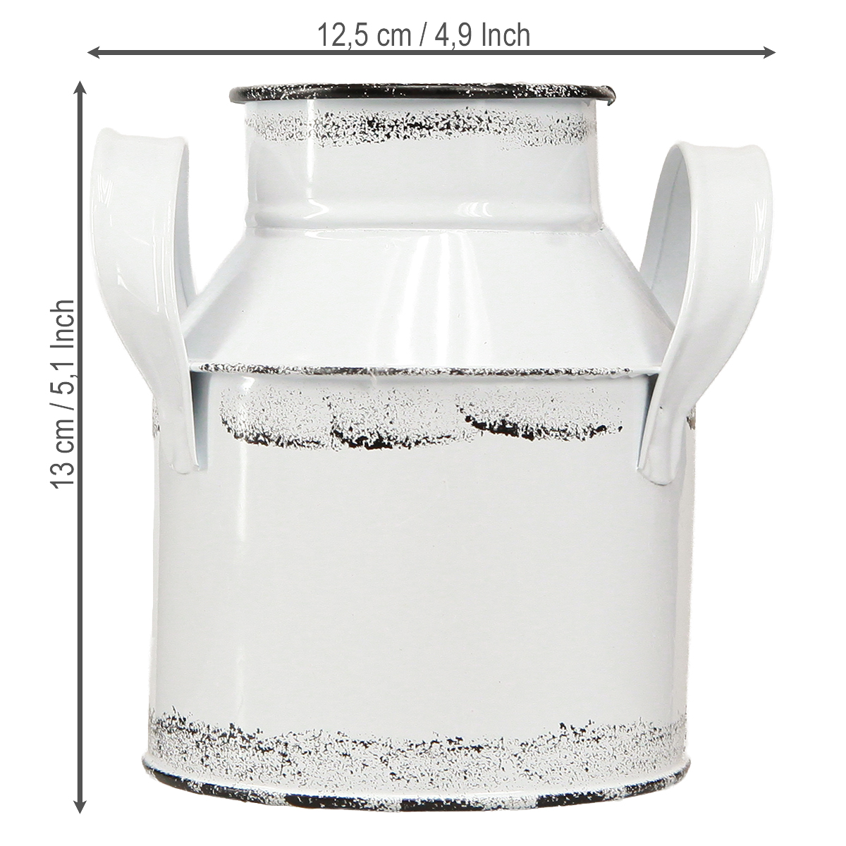 La jarra decorativa con asas de metal en blanco y negro irradia un encanto rústico que recuerda a tiempos pasados. Con una altura de aproximadamente 13 cm, es compacto y versátil. Esta decoración de metal, compuesta por dos elegantes jarras decorativas, es un auténtico elemento destacado para cualquier hogar que busque una mezcla de diseño moderno y estilo nostálgico. Las jarras tienen bordes negros que les dan un toque rústico. Diseñados en estilo campestre, encajan perfectamente en un interior acogedor que apuesta por la decoración rústica. Ya sea como jarrón para flores secas o como elemento único en su mesa de comedor, estas jarras de metal se combinan armoniosamente en cualquier diseño interior. Utilice las jarras para agregar un toque elegante a su sala de estar o cocina.