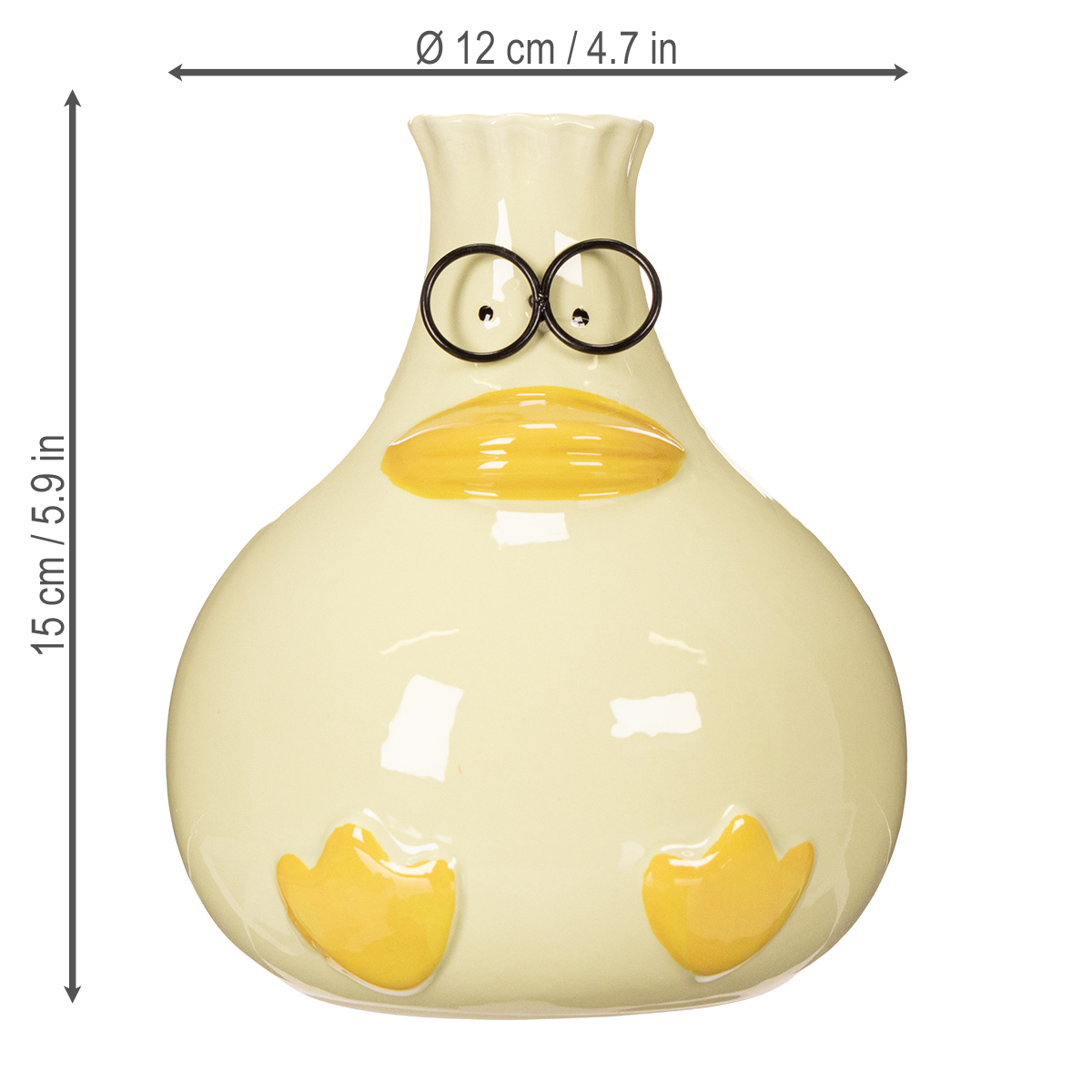 Estos jarrones de cerámica con forma de pato combinan un diseño original con una artesanía de alta calidad. Con 15 cm de altura y 12 cm de diámetro, no son ni demasiado grandes ni demasiado pequeños, lo que los hace versátiles para diversos usos. Su robusta estructura de cerámica no solo irradia estabilidad, sino que también aporta un toque alegre y vibrante a cualquier estancia con su suave color amarillo. Su diseño moderno se integra a la perfección en diversos estilos de decoración, desde minimalistas y escandinavos hasta alegres y encantadores para la habitación de un niño.