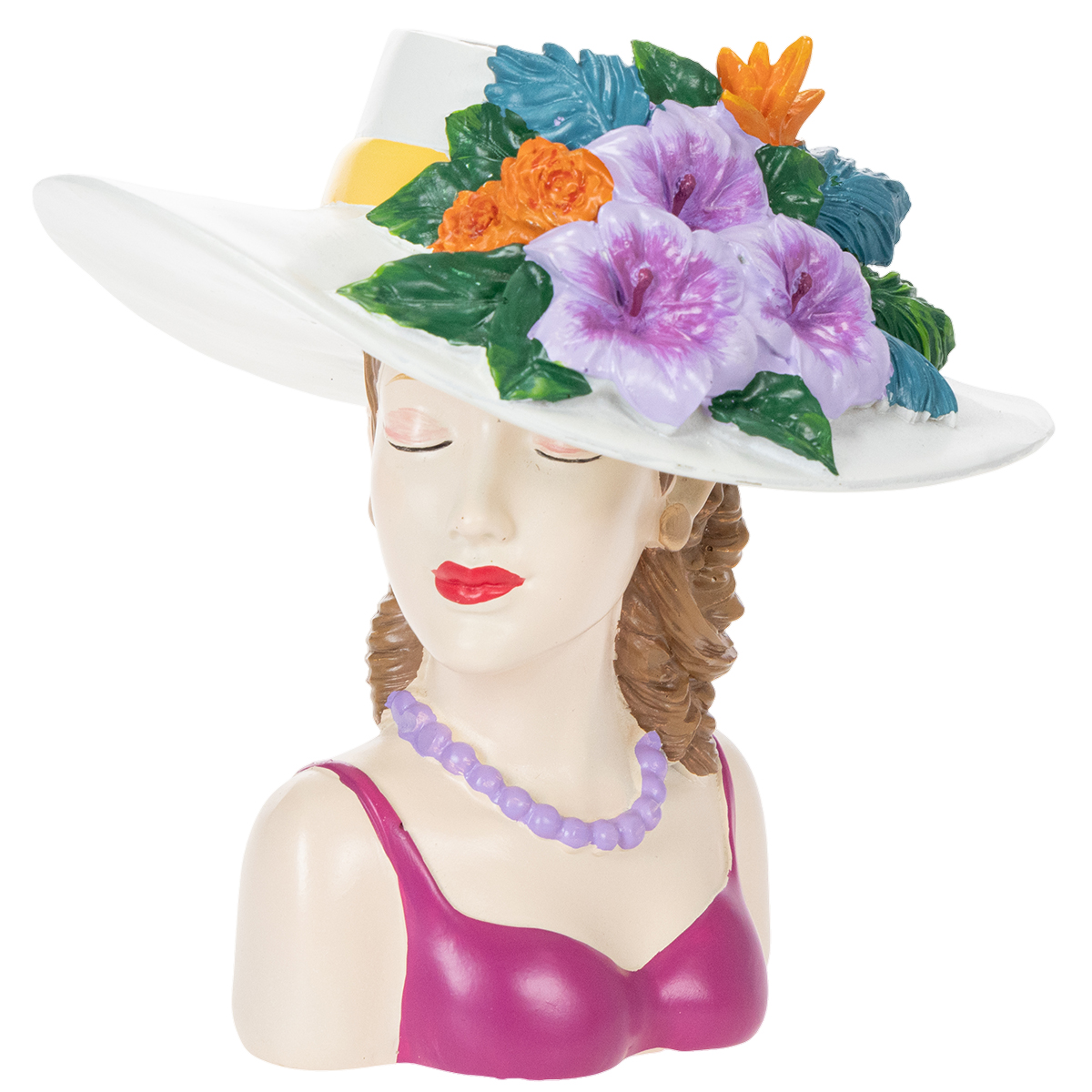 Jarrón con forma de mujer con sombrero y flores, maceta decorativa para interiores y exteriores, 20 cm.