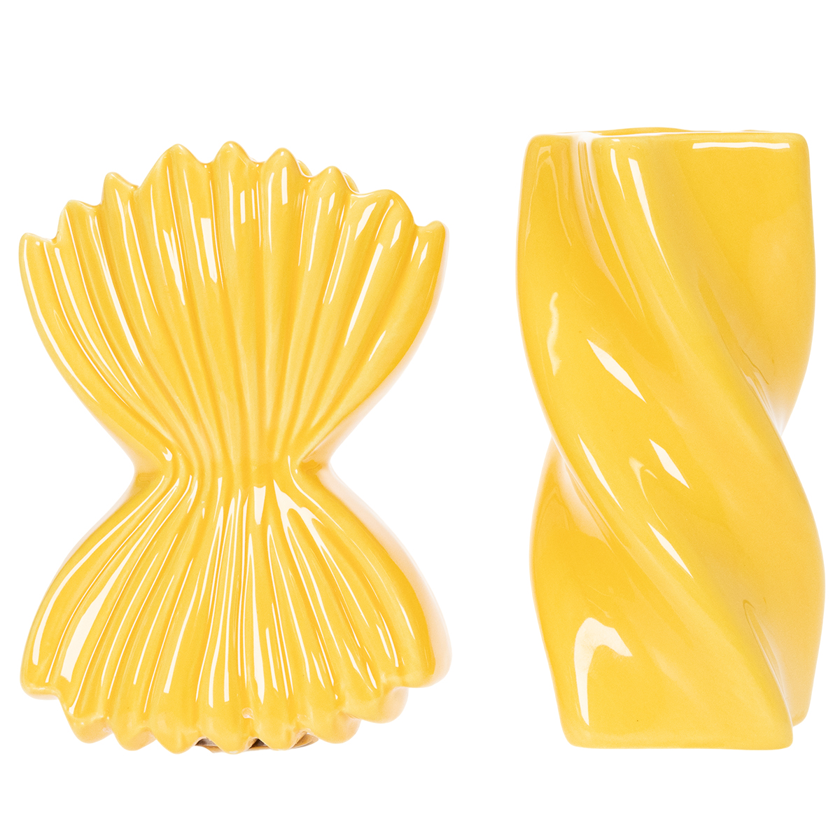 Estos jarrones decorativos de cerámica cautivan a primera vista con su excepcional diseño, inspirado en las formas divertidas de la popular pasta italiana. ¡Perfectos para los amantes de la decoración original y las piezas de diseño modernas! La combinación de un amarillo vibrante y un diseño detallado los convierte en un accesorio elegante para espacios de estar u oficinas de estilo mediterráneo. Combínalos con un mantel sencillo o una decoración de inspiración mediterránea para lograr un conjunto armonioso.