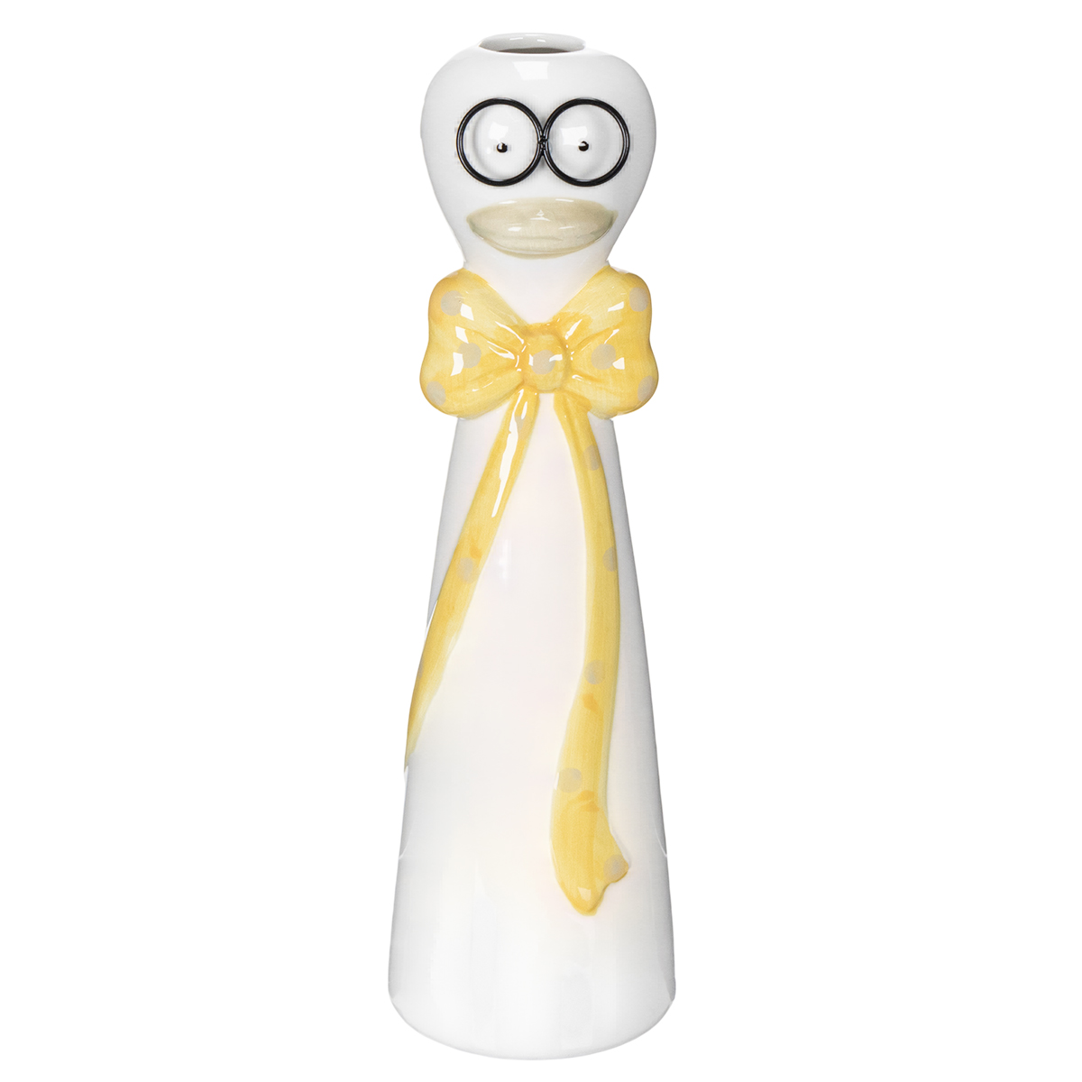 ¿Buscas un jarrón único, práctico y que te haga sonreír? ¡Nuestro adorable jarrón con forma de pato es justo lo que necesitas! Con 24 cm de alto y detalles encantadores como el lazo amarillo, será un centro de mesa encantador. Ya sea en la mesa del comedor, en el alféizar de la ventana o como un regalo original, este juego de dos jarrones de cerámica en blanco y amarillo añadirá un toque alegre a tu decoración.