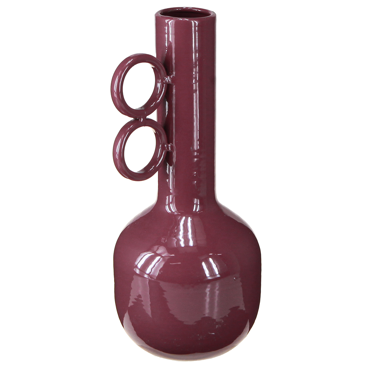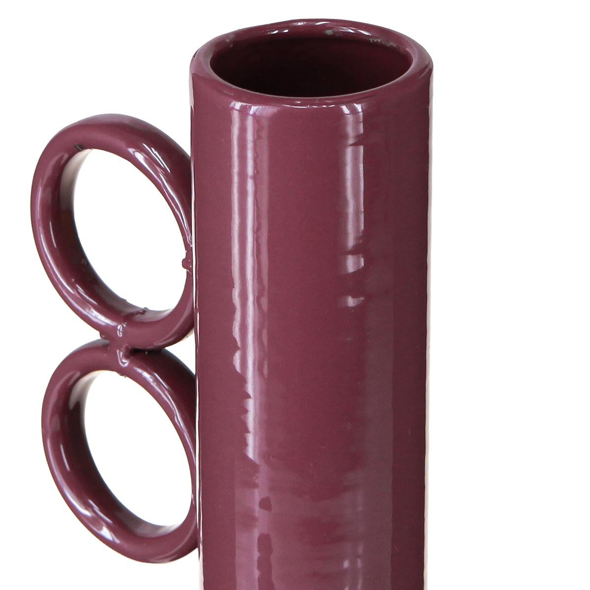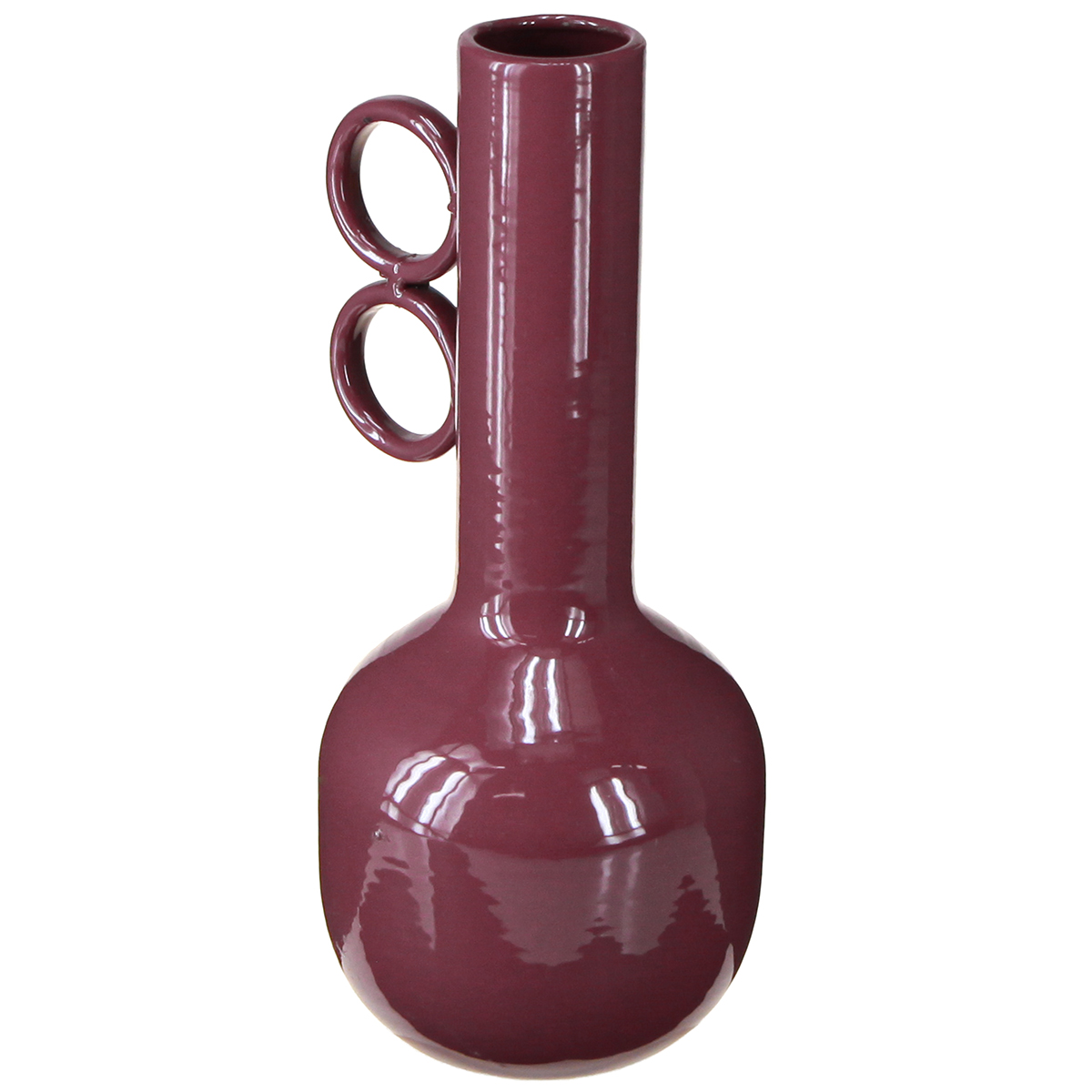 Jarrón de diseño moderno con cuello largo y asas redondas.