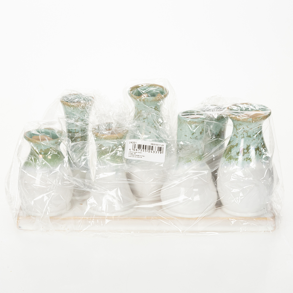- Juego de 7 jarrones decorativos de cerámica en una bandeja resistente.