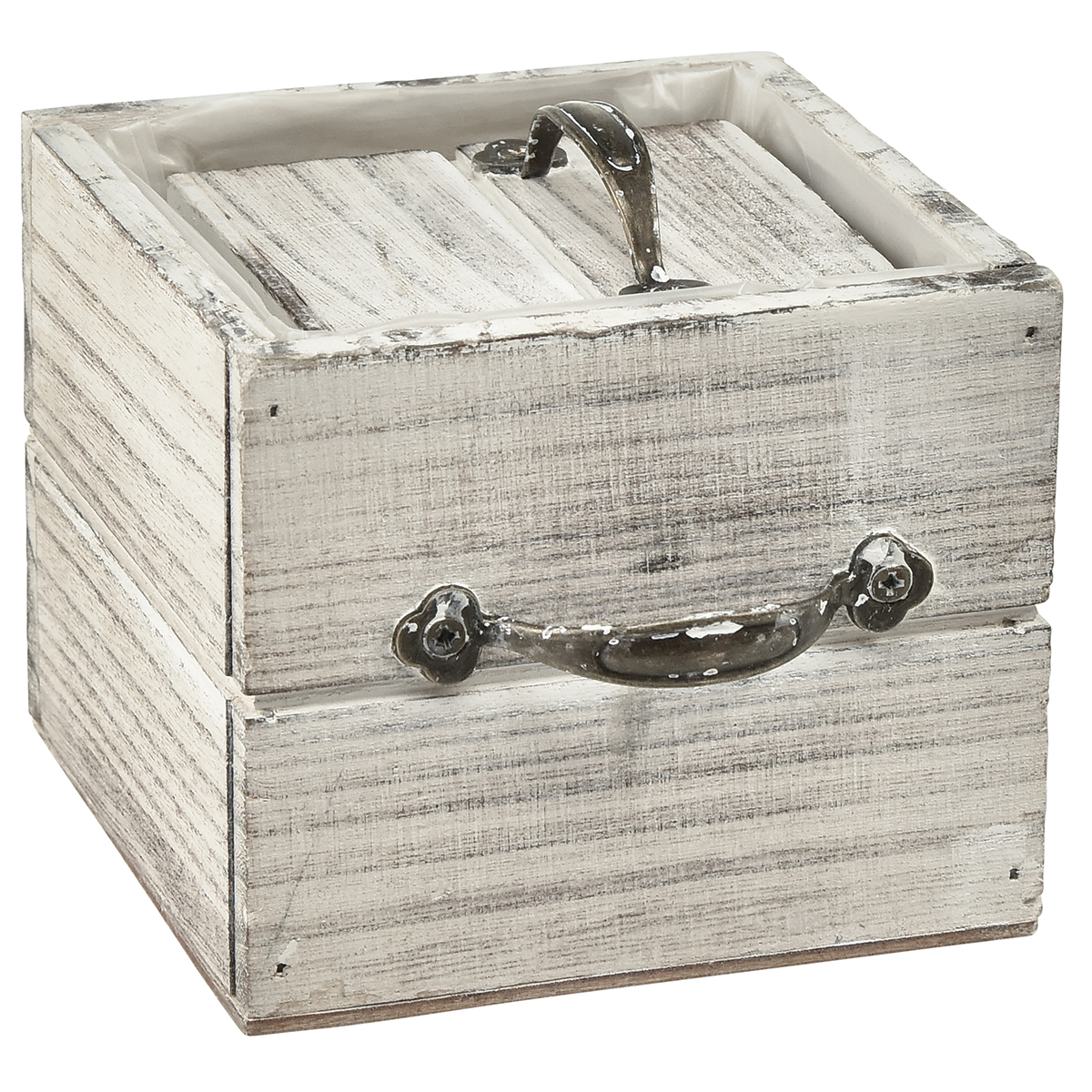 Juego de cajones de madera con asa, blanco pulido, 12x12cm y 9x9cm - Almacenamiento rústico - Juego de 2