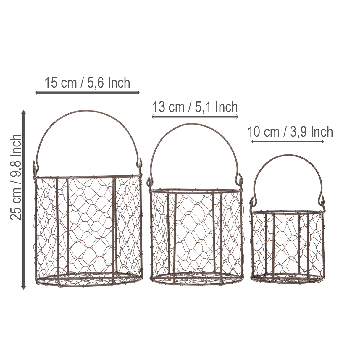 Juego de cestas de alambre ideal para usar en la cocina o el jardín, 25 cm, 1 juego