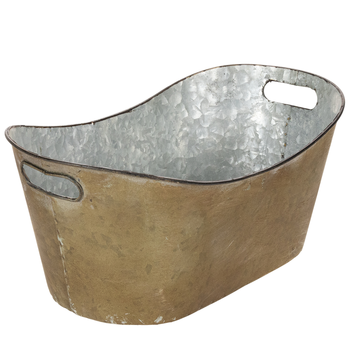 Ya sea para la casa del jardín, el balcón o la terraza, este juego de jardineras con aspecto vintage llamará la atención. Tres tinas fabricadas en metal componen el conjunto. En el interior se puede ver el metal reluciente. En el exterior, las tinas se lavan de color cobre y blanco.
