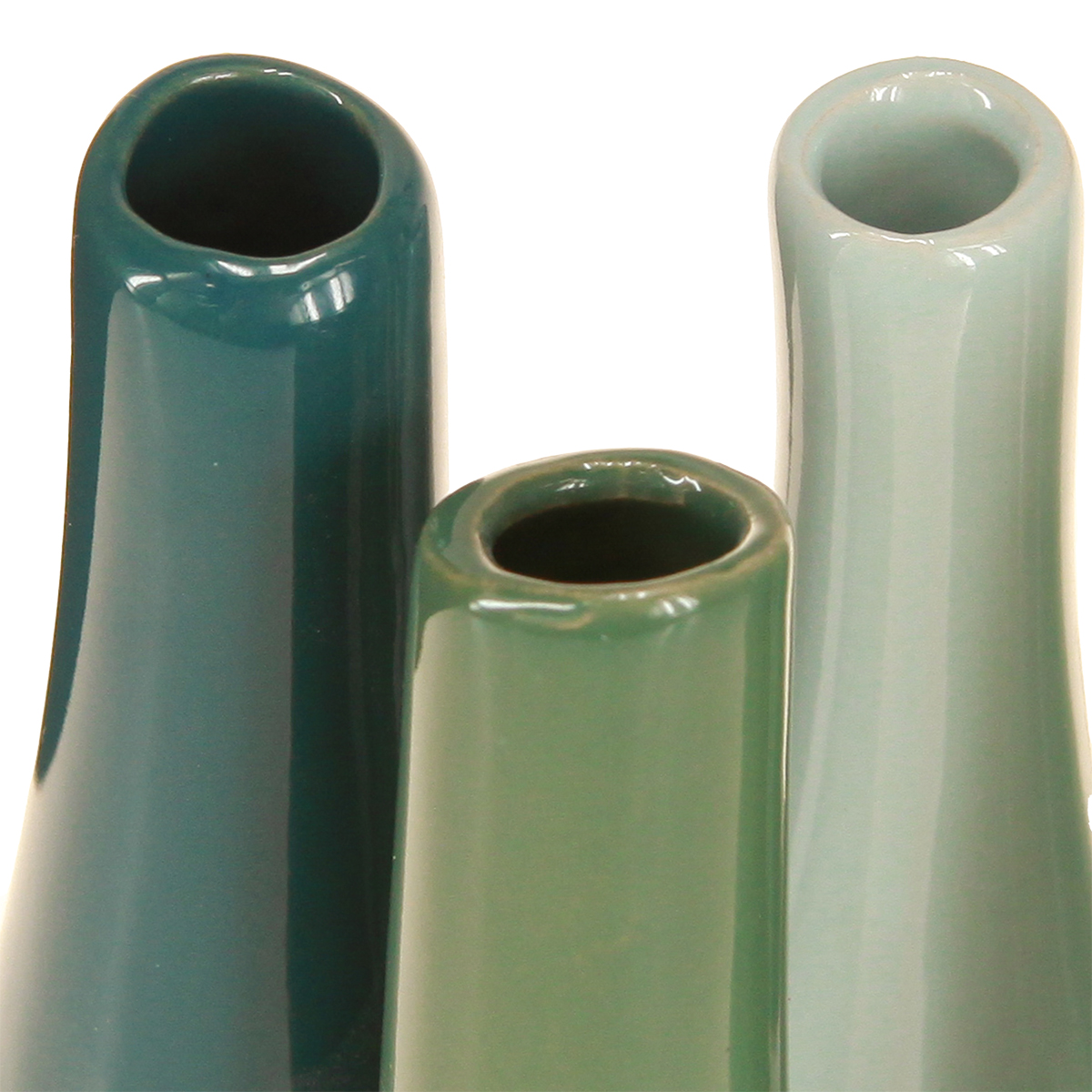 Los tonos verdes de estos jarrones de diseño combinan a la perfección con materiales naturales como la madera o la decoración de estilo escandinavo. Colócalos en la encimera de tu cocina para darle un toque encantador o decora la estantería de tu baño para darle un toque fresco y vibrante. El conjunto también es un elemento decorativo impactante en una mesita de noche o un escritorio, perfecto para quienes aprecian los detalles con estilo.