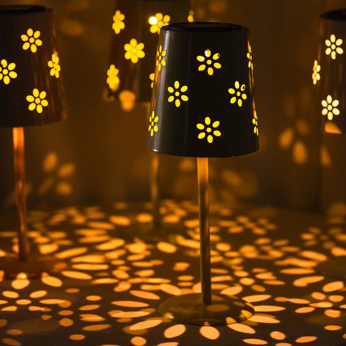 La romántica lámpara de mesa solar con encantadores detalles.