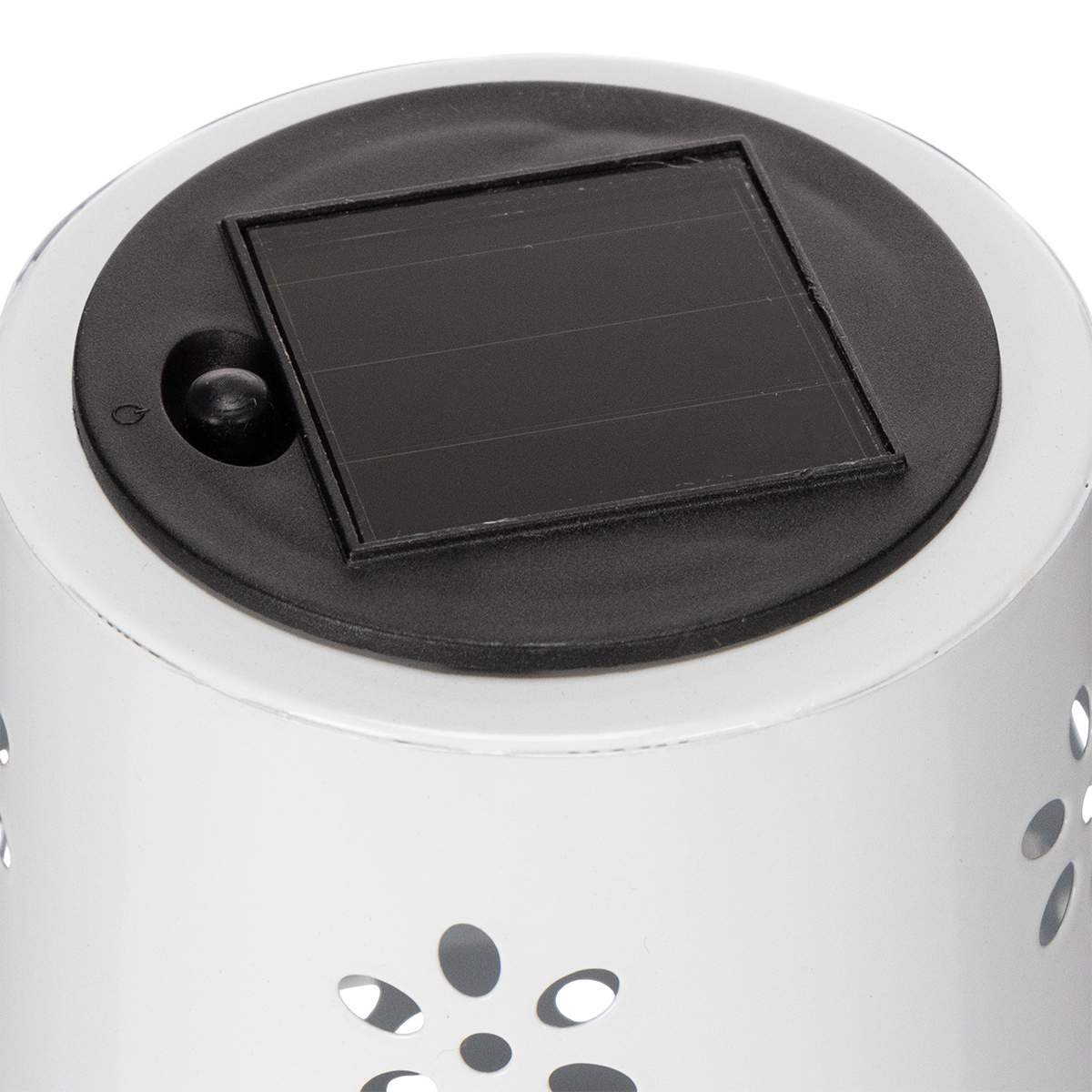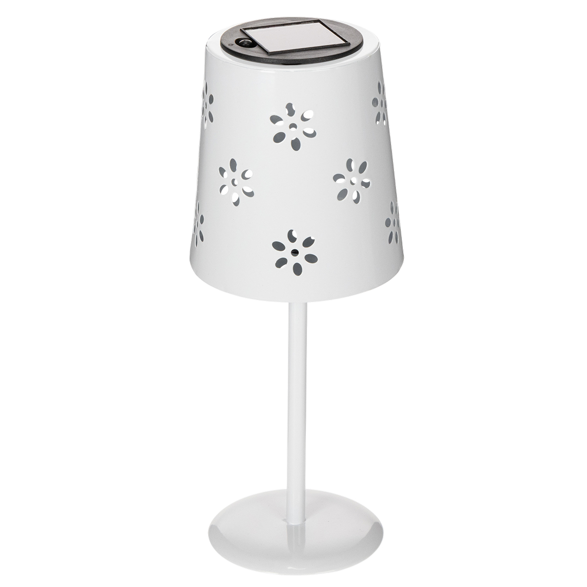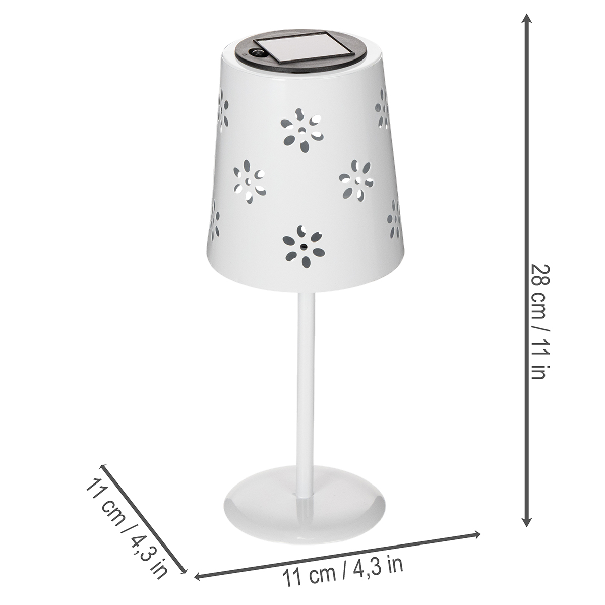 Lámpara de mesa solar en color blanco: Iluminación romántica para balcón, terraza y jardín.