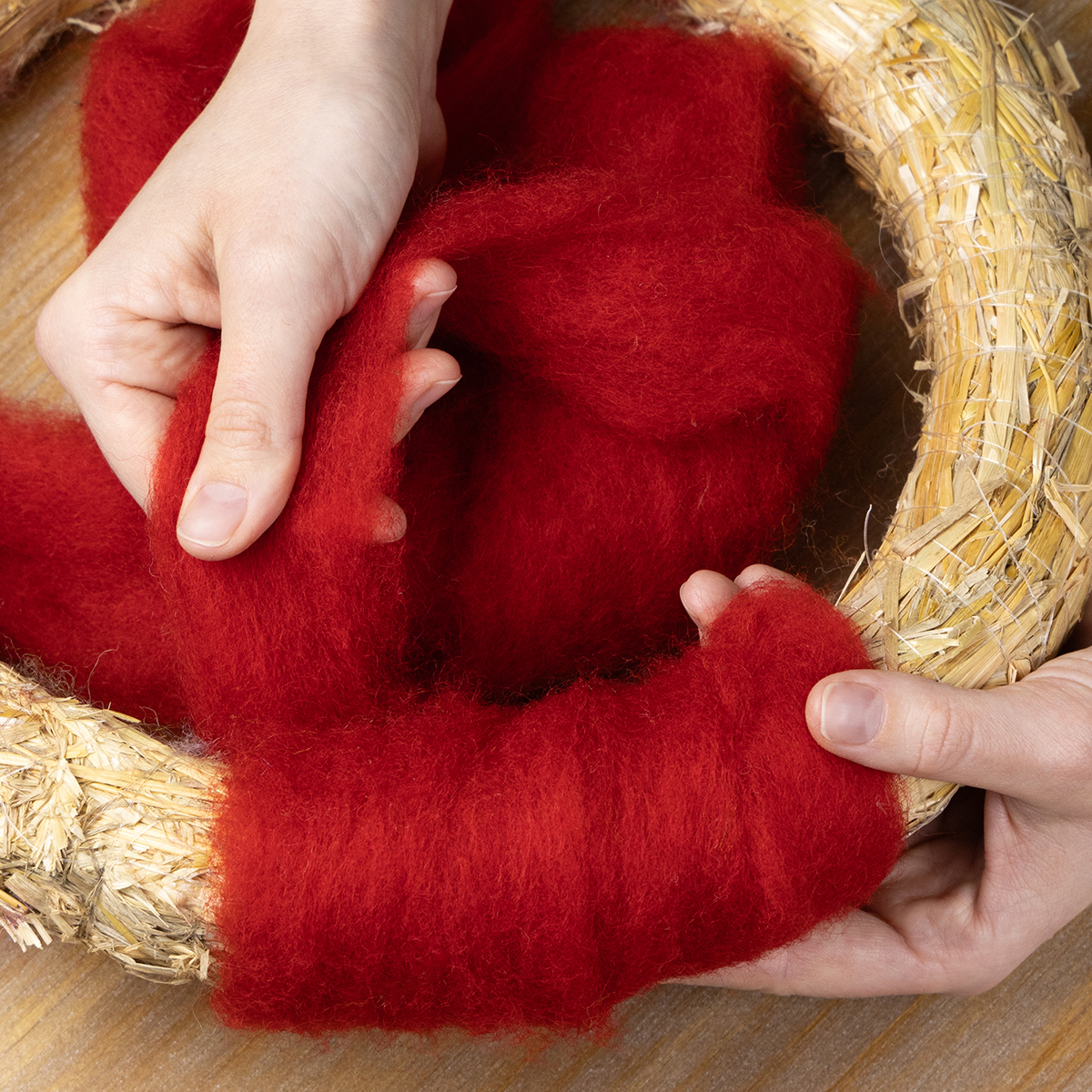 ¿Buscas una idea original para la decoración de tu mesa? Simplemente envuelve la lana de fieltro sin apretar alrededor de vasos o jarrones para darle un toque acogedor. ¿O quizás necesitas un toque original para el diseño de tu corona? Envuelve una base de corona sencilla con esta lana roja y ¡observa cómo se vuelve vibrante y elegante al instante! La lana también es excelente para floristería: úsala como base para arreglos florales o pequeños centros de mesa para darles más volumen y elegancia.