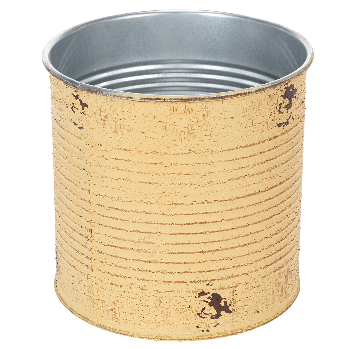 Para plantar, debe forrar la caja decorativa en albaricoque con papel de aluminio, pensar en el drenaje y, si se instala al aire libre, taladrar agujeros en el suelo para drenar el exceso de agua. La lata rústica también está disponible en varios colores pastel y otros tamaños.