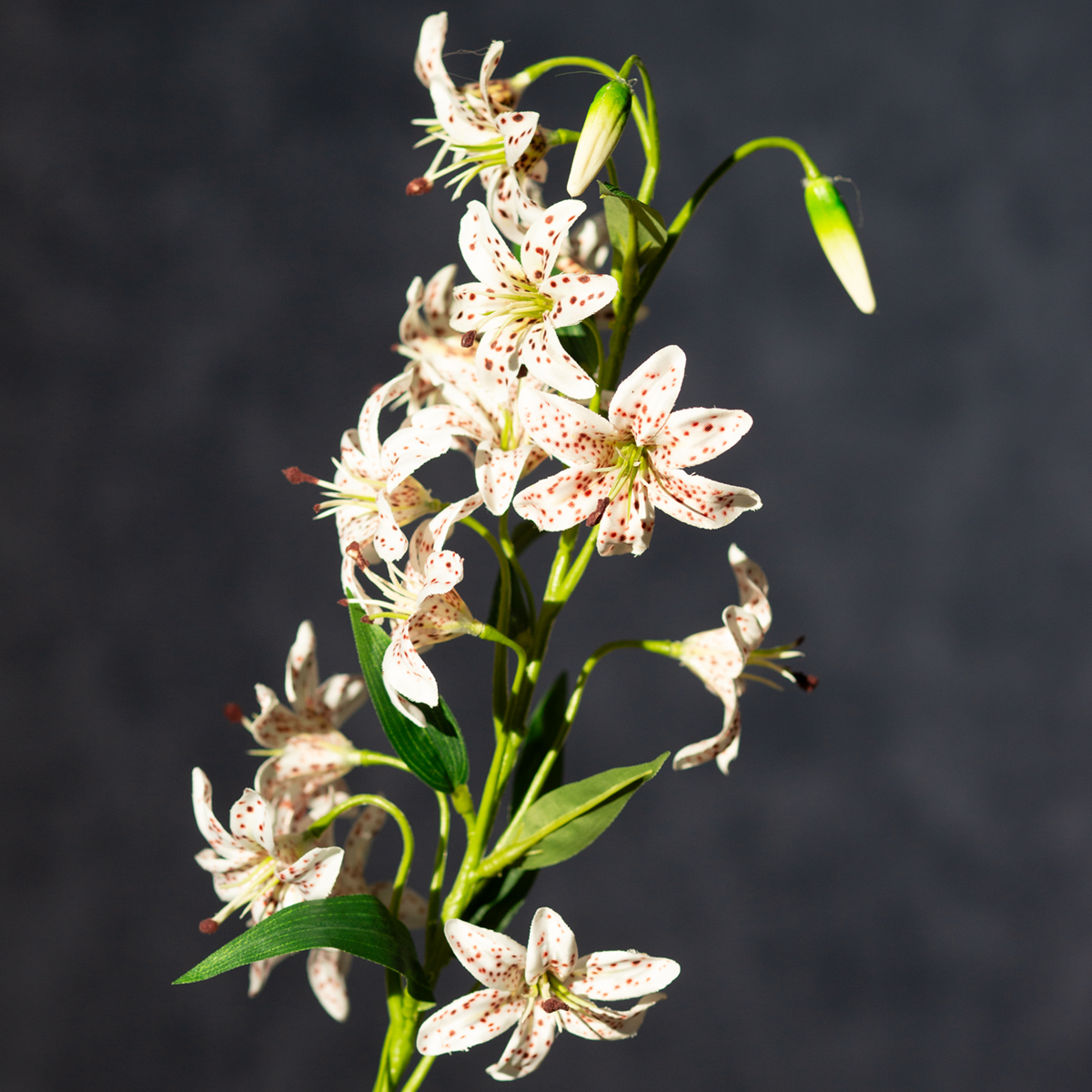 El lirio blanco siempre ha simbolizado pureza, inocencia y elegancia. Se asocia a menudo con celebraciones como bodas o ceremonias religiosas. Su majestuosa apariencia y su delicada combinación de colores aportan un toque especial a cualquier estancia; especialmente al combinarse con el simbólico color blanco, se convierte en un emblema de armonía y paz. El verde representa vitalidad y vida, mientras que los tonos burdeos irradian calidez y profundidad. Esta combinación convierte al lirio en un clásico atemporal en el mundo de la decoración.