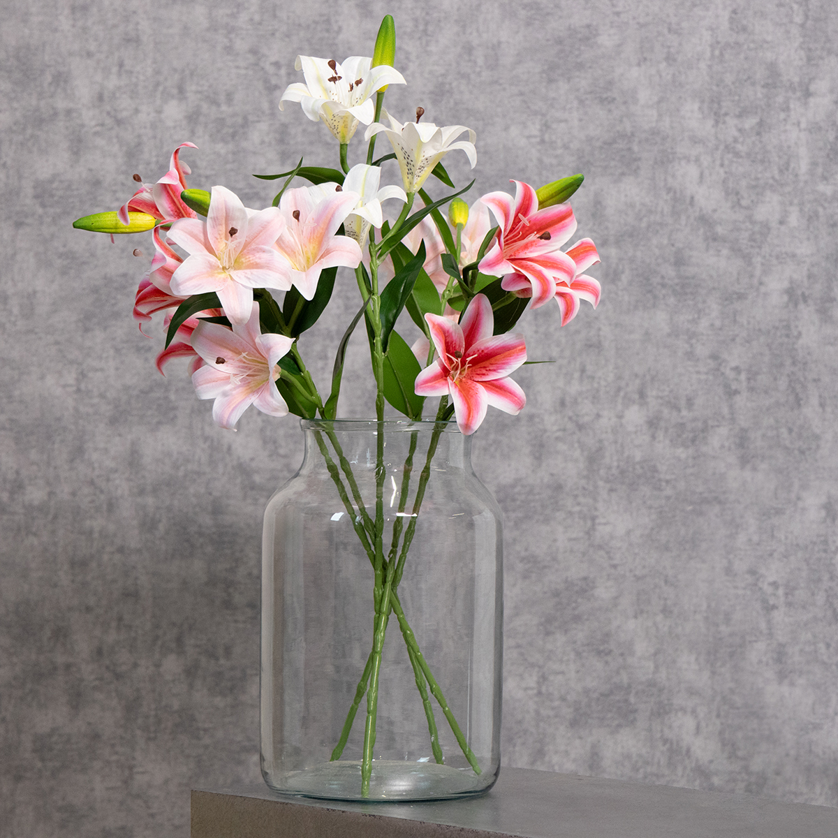 Estos lirios artificiales son la elección perfecta para quienes valoran la calidad y la estética. Los delicados pétalos rosados, combinados con los estambres y hojas verdes meticulosamente detallados, lucen increíblemente realistas. El poliéster y el plástico garantizan no solo una apariencia realista, sino también una larga vida útil. Ya sea para decoraciones de bodas, arreglos de mesa o fondos fotográficos, estos lirios se adaptan fácilmente a cualquier ocasión. Con una altura total de 66 cm, son ideales como parte de arreglos florales altos o como llamativos detalles en recepciones y carpas. Una característica especialmente atractiva: estos lirios combinan a la perfección con otras flores de seda. Pruebe, por ejemplo, una combinación con rosas blancas o delicadas ramas de eucalipto: ¡simplemente impresionantes! Estas flores artificiales también son perfectas para estilos de decoración modernos como el japandi o el bohemio. Aportan un toque elegante y, a pesar de su simplicidad, tienen un aspecto lujoso y elegante. El juego de dos lirios le ofrece múltiples opciones de decoración. Ya sea como elemento destacado en un jarrón o como parte de un exuberante ramo, estos lirios son encantadores en todos los sentidos.