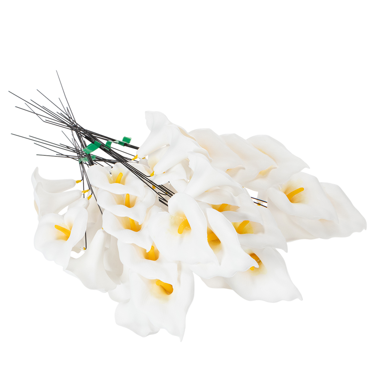Lirios cala ensartados en alambre, pequeños, blancos, 50 unidades