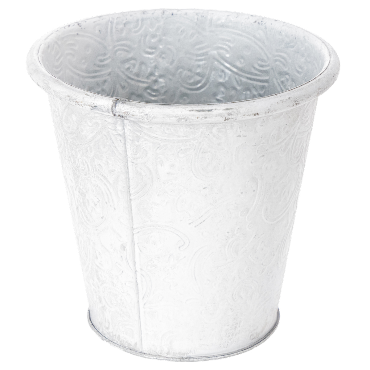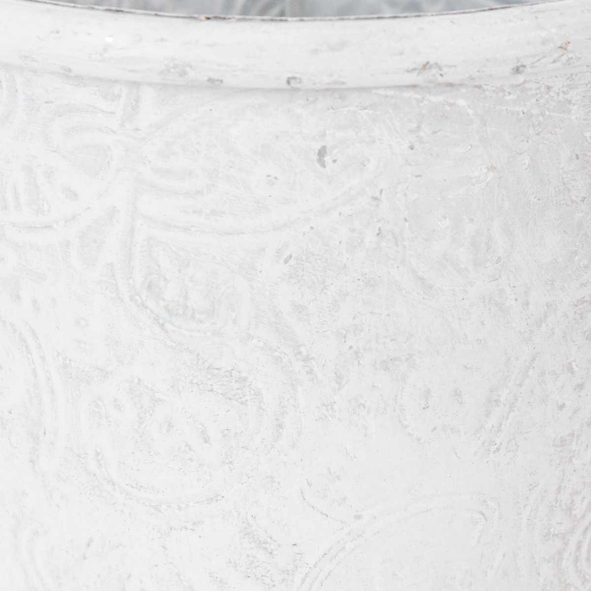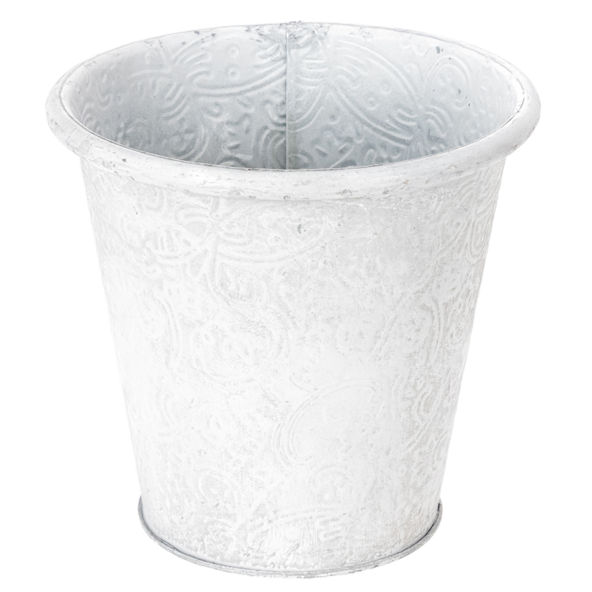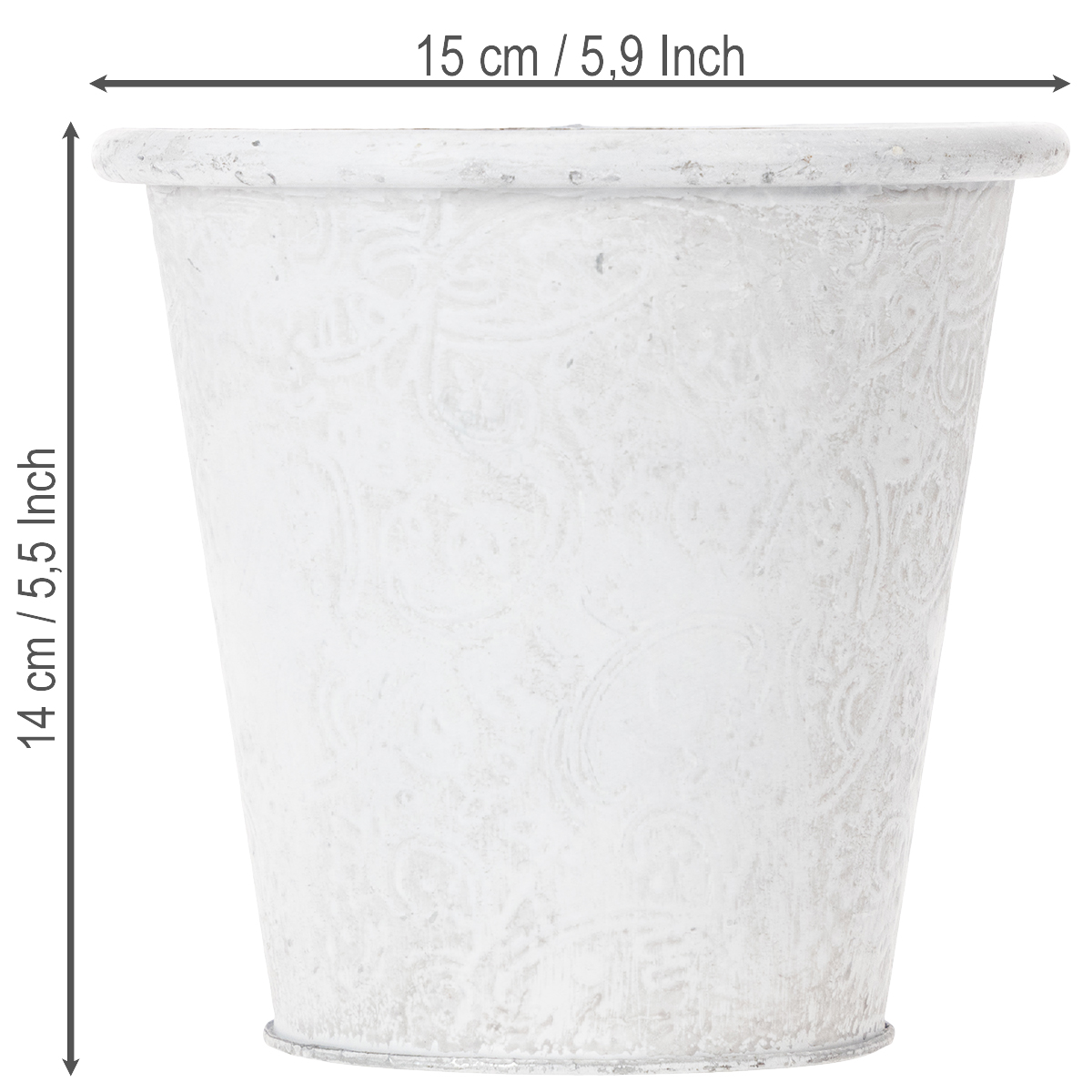 Maceta con adornos, maceta decorativa, recipiente de metal, blanco, Ø15,5 cm, H14,5 cm