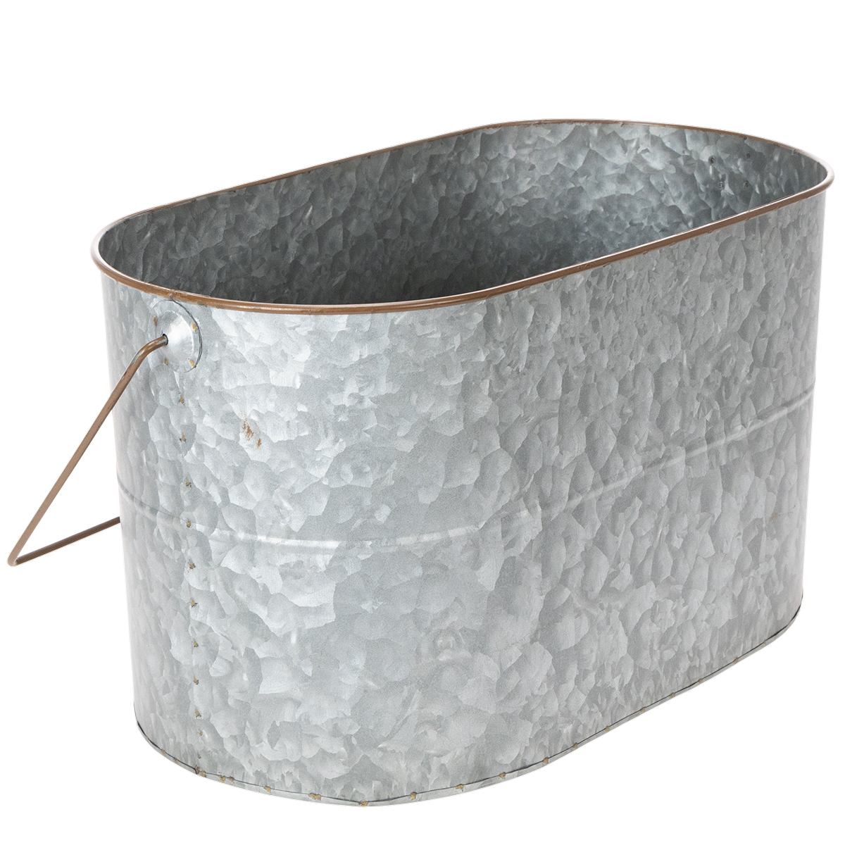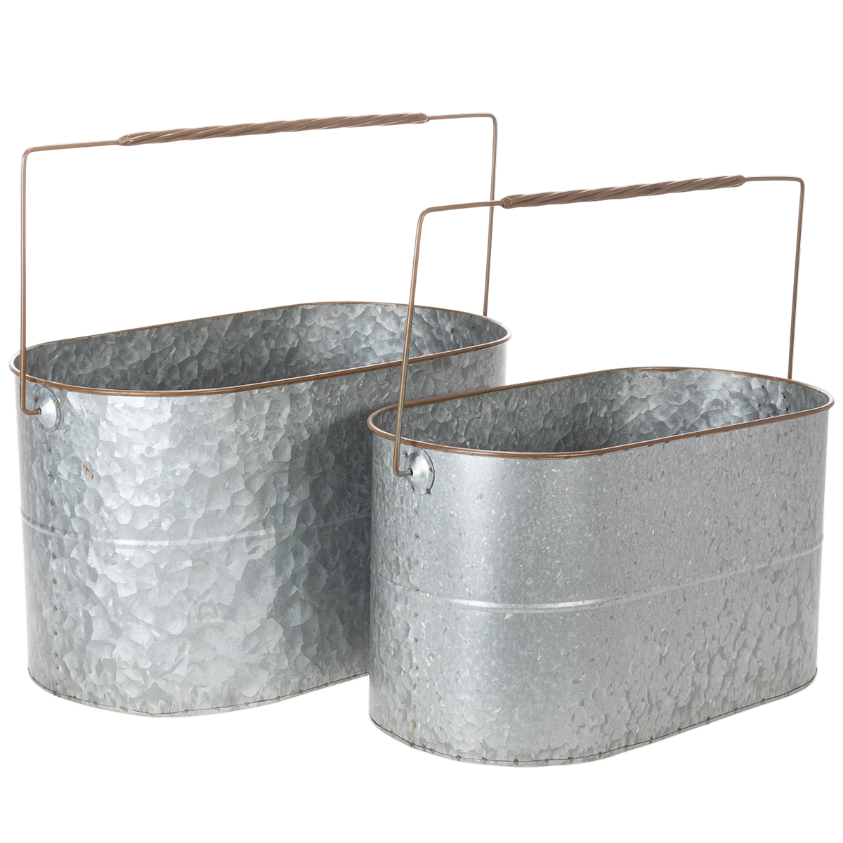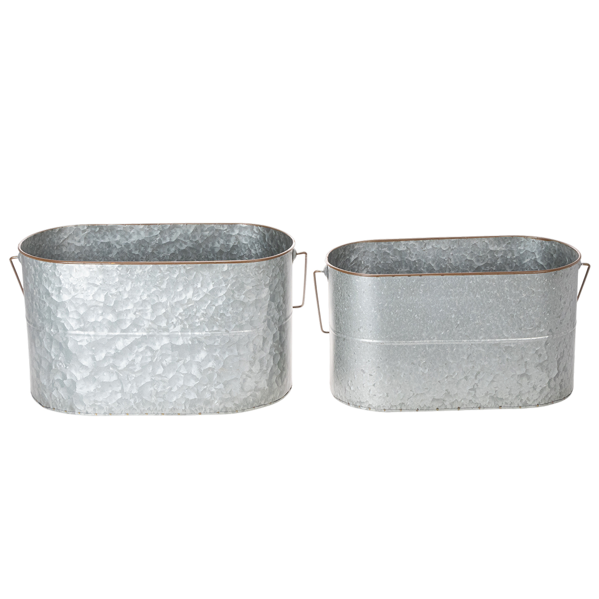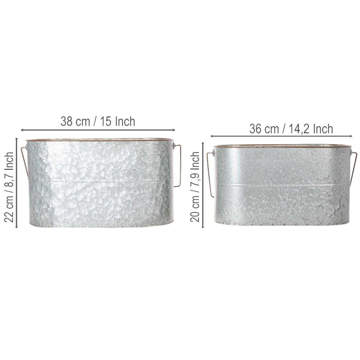 Maceta con asa, maceta de metal, jardinera, plateada, marrón, 22/20 cm de alto x 42/40 cm de largo, juego de 2
