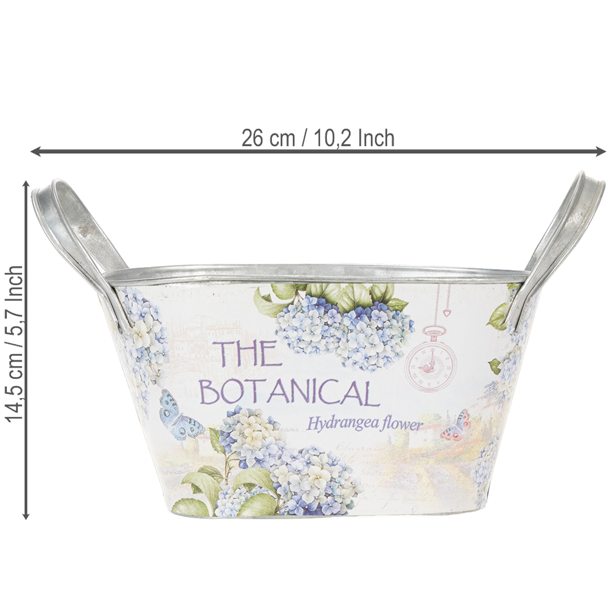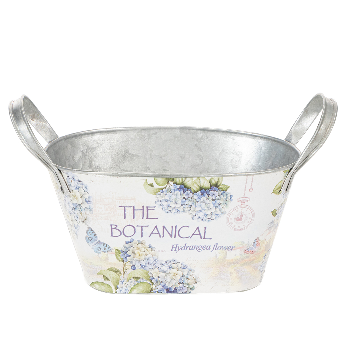Maceta con asas, diseño de hortensias, metal, 26×13×14,5 cm