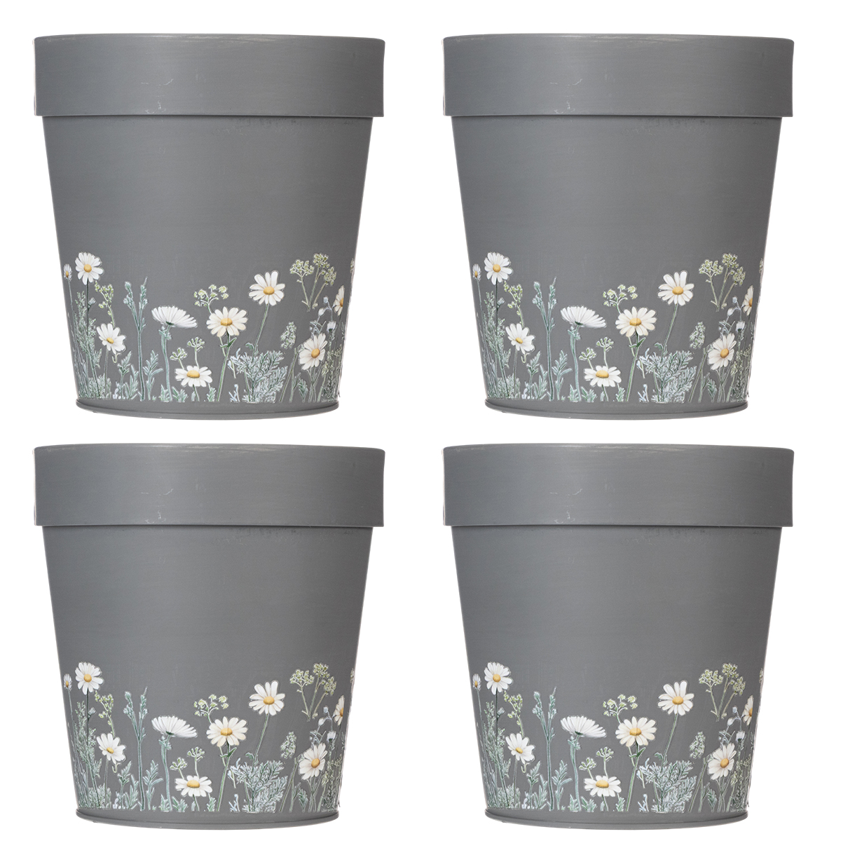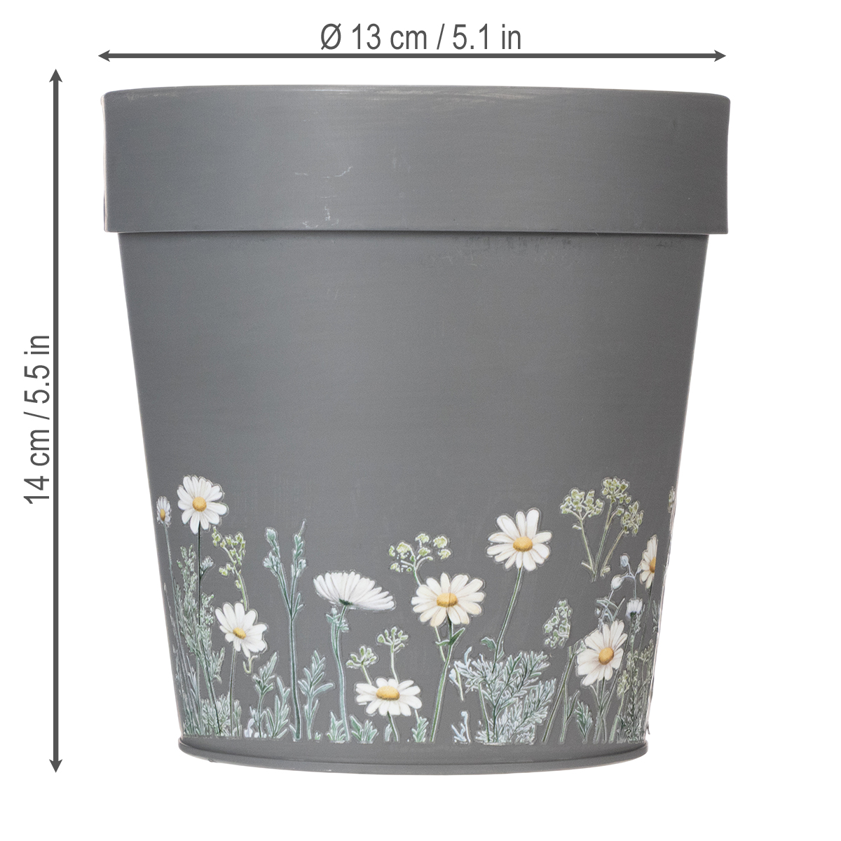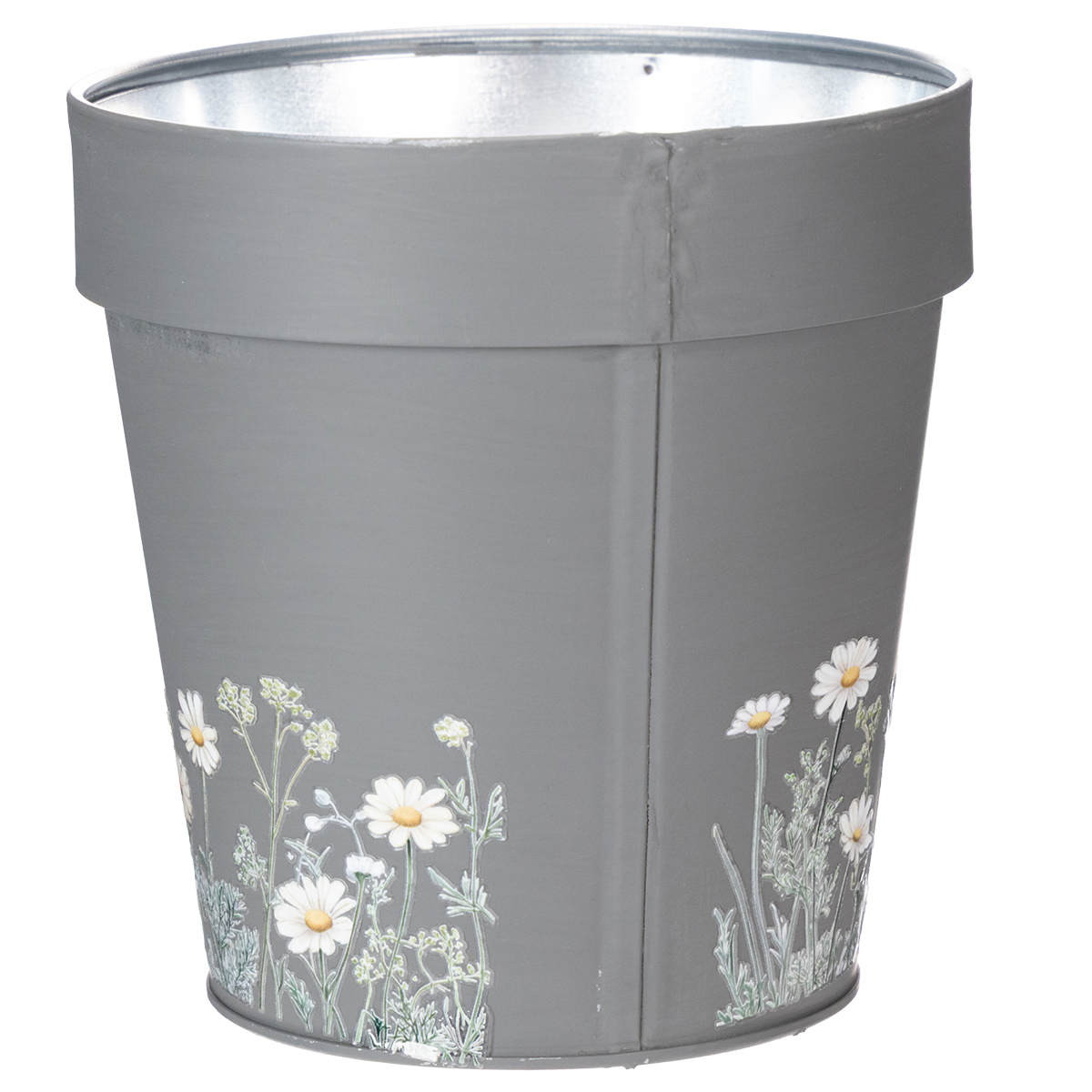 El diseño floral de esta elegante maceta gris aporta un toque limpio y moderno a cualquier ambiente. Inspirada en el diseño de interiores escandinavo, esta maceta impresiona por su maravillosa combinación de simplicidad y atención al detalle. Los encantadores estampados florales son atemporales y crean una atmósfera armoniosa con su interior. Fabricada en metal robusto y ligero, la maceta es duradera; sin embargo, no se garantiza su total resistencia a la oxidación si se utiliza en exteriores o en contacto con el agua.