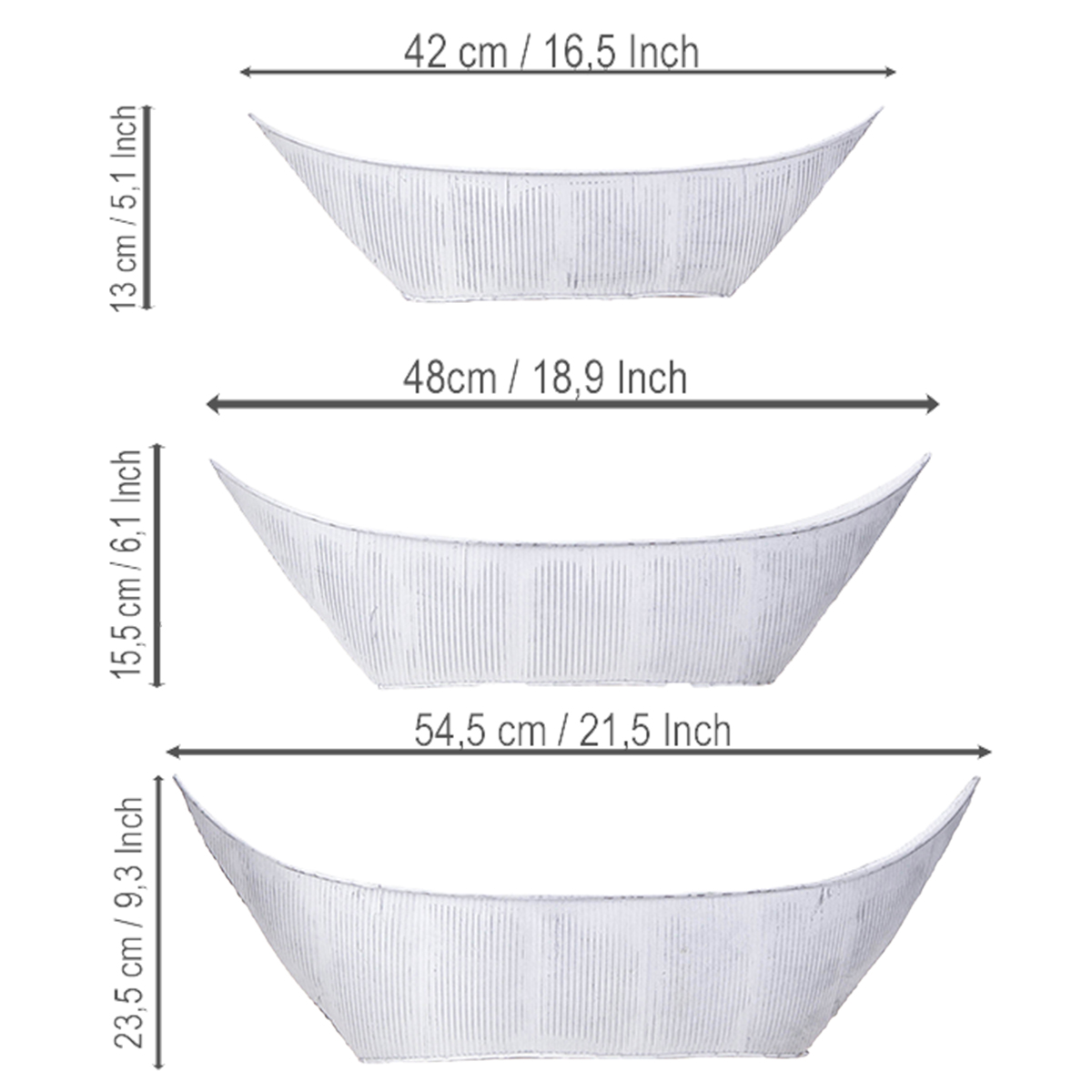 Maceta con forma de barco, de metal, blanca/plateada, 54,5/48/42 cm, juego de 3