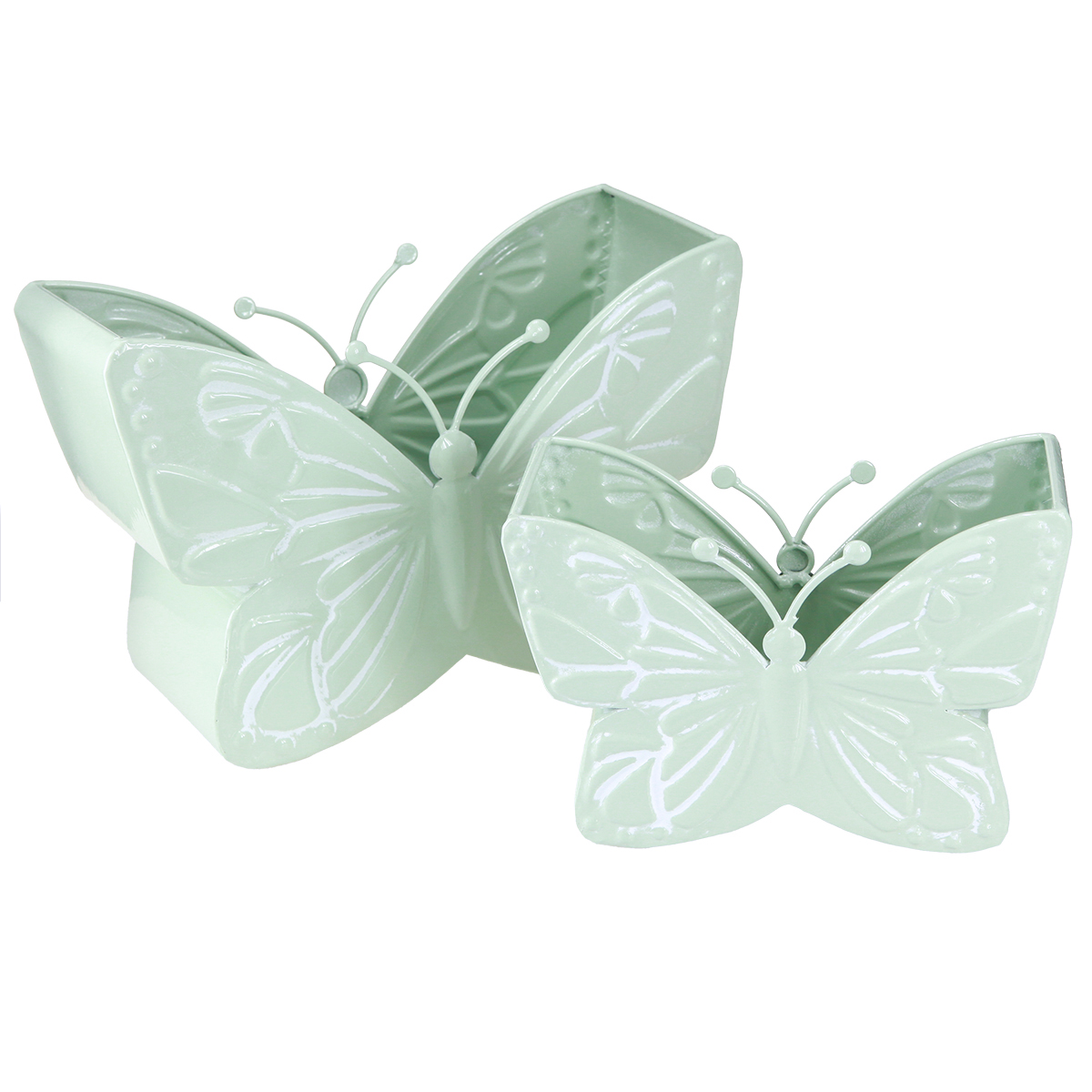 Maceta de metal con forma de mariposa, color verde, 22,5/30 cm, juego de 2