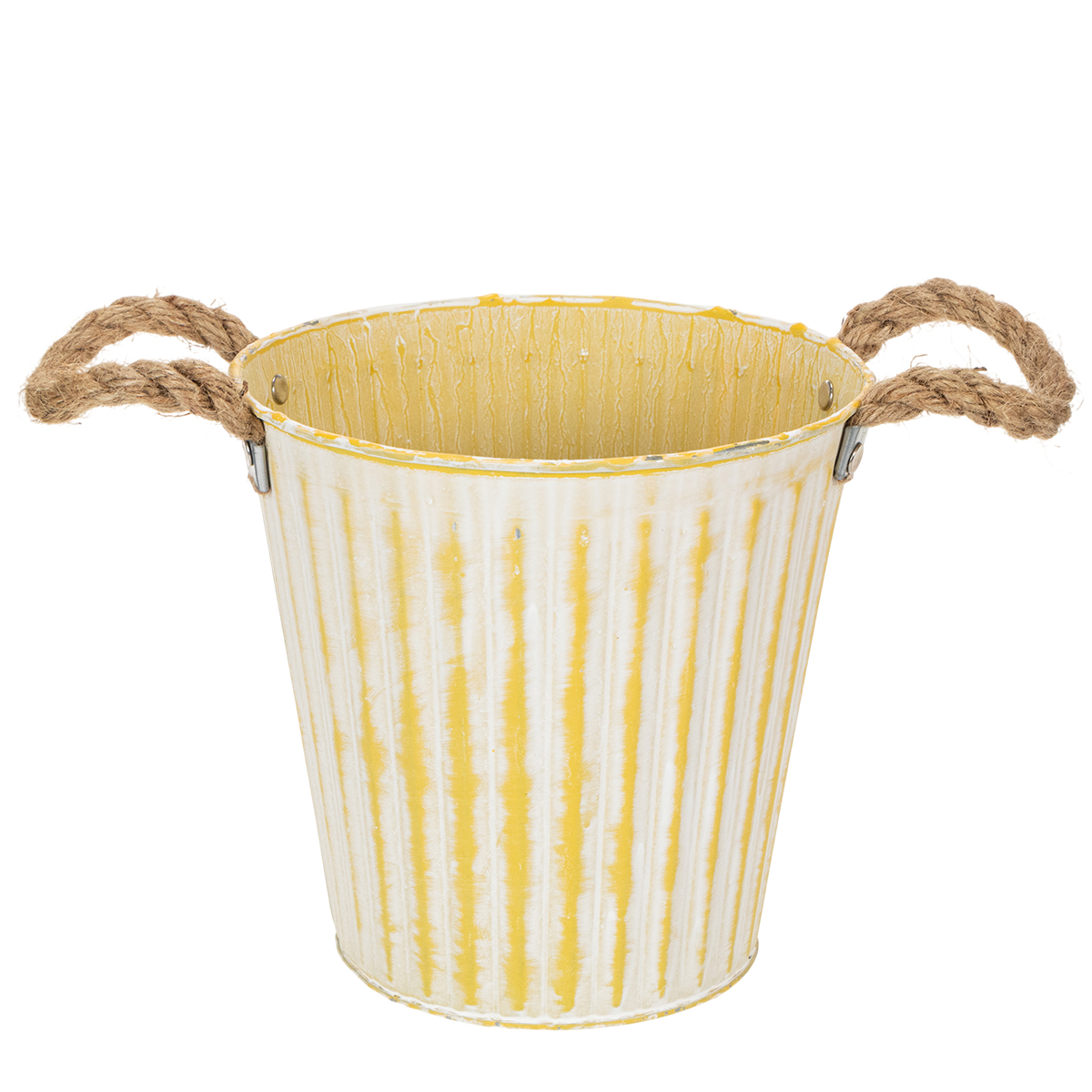 Maceta de metal, decoración primaveral, maceta con asas, amarilla, estilo shabby chic, Ø18cm, H17.5cm