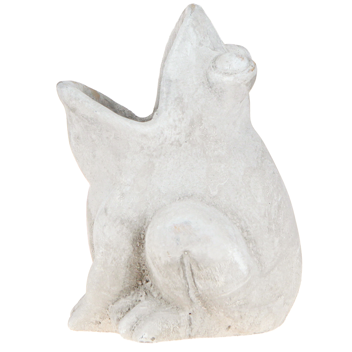 Maceta decorativa con forma de rana, color gris hormigón, altura 18,5 cm.