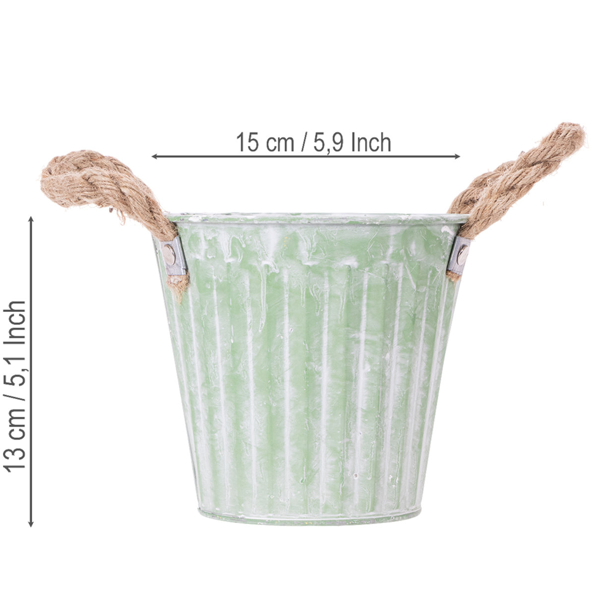 Maceta decorativa, cubo de metal para plantar, maceta con asas, rosa/verde/amarillo estilo shabby chic Ø15cm H13cm juego de 3 piezas