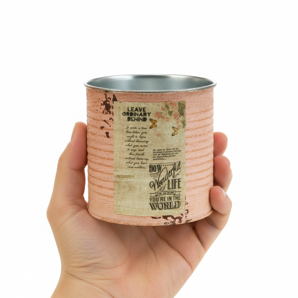 Para utilizar la caja decorativa como macetero o macetero, recomendamos forrar el recipiente con papel de aluminio para evitar la oxidación y las filtraciones de agua.