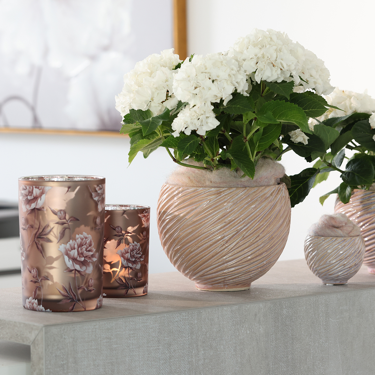 El suave tono rosa crema a menudo se asocia con emociones positivas como el amor y la calma, lo que lo convierte en la opción perfecta para espacios de estar relajantes. Las plantas presentadas en estas macetas pueden transmitir distintos significados, desde armonía hasta alegría de vivir, según su tipo. Decora con plantas que tengan significados simbólicos profundos para crear una atmósfera inspiradora.