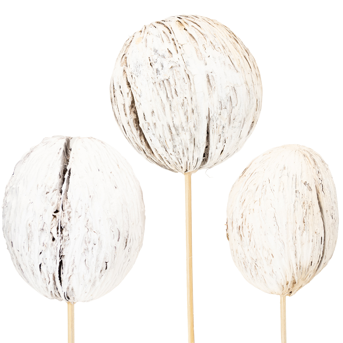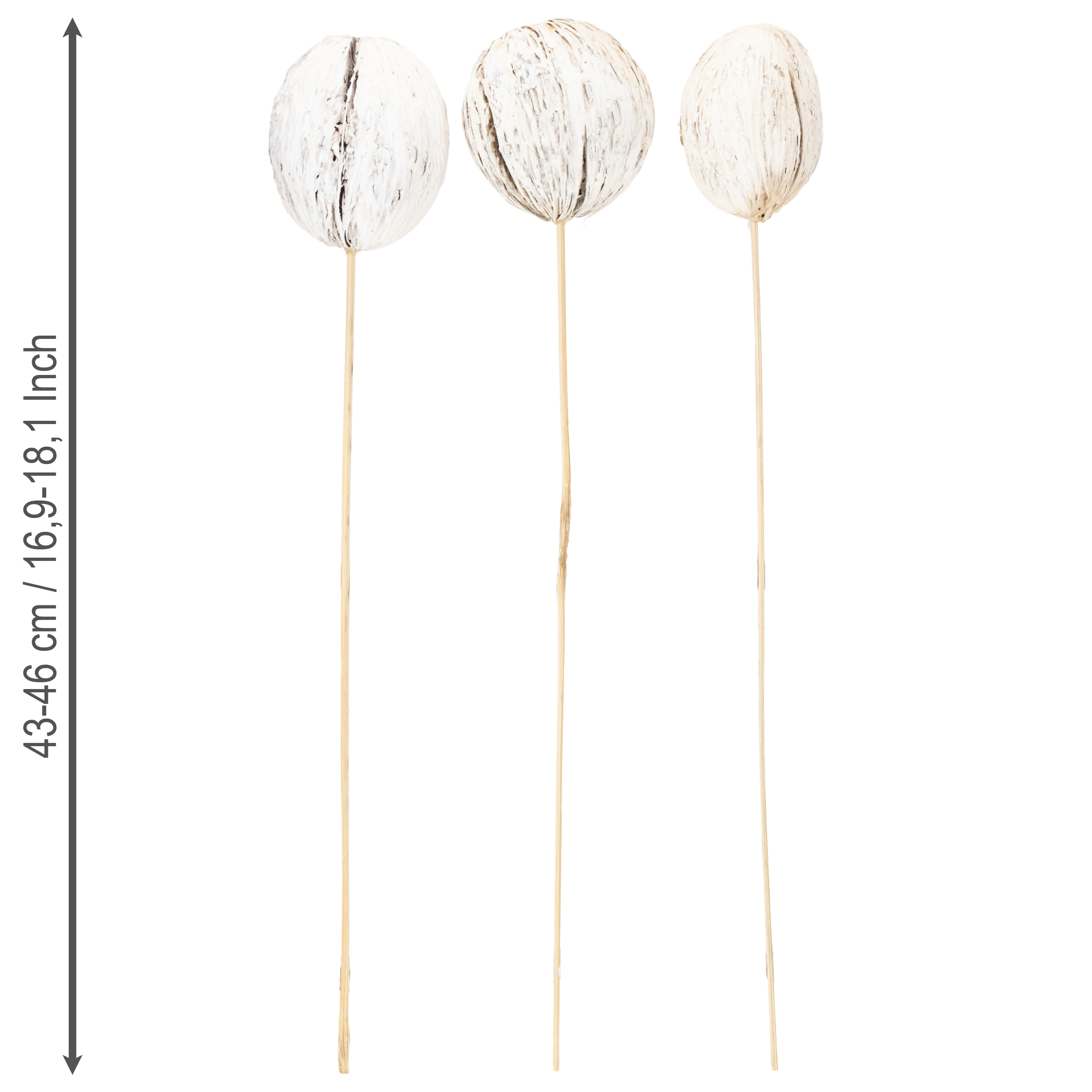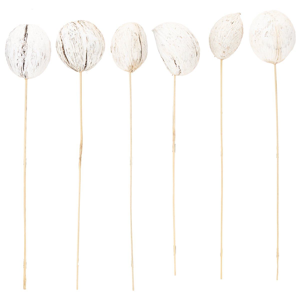 Dado que las pequeñas bolas decorativas se han pegado prácticamente en largos palos de madera, es aún más fácil decorarlas: colóquelas en un jarrón con otros materiales naturales exóticos como Bull Cup, Cane Cone y Palmspear y cree uno de esta manera Gran mesa o decoración de la habitación. Además, puede unir fácilmente las bolas de madera a través de las varillas en tierra o espuma floral, lo que lo hace inmensamente más fácil, por ejemplo, embellecer sus macetas en casa o incorporar las frutas decorativas en un arreglo funerario. Por supuesto, también puede quitar los tallos y poner las nueces de Mintolla en un tazón o tal vez una hoja de plátano seca en un aparador o alféizar de una ventana. ¡El atractivo original creado de esta manera seguramente atraerá la atención de todos!