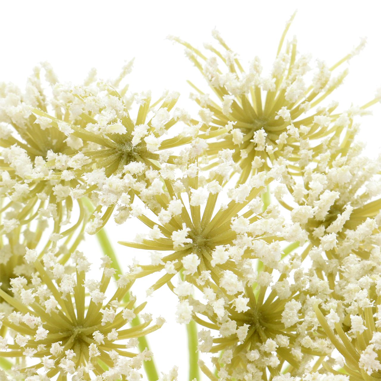La milenrama artificial en blanco tiene una longitud de aproximadamente 84 centímetros, con un diámetro de la cabeza de la flor de aproximadamente 25 centímetros. Está hecho completamente de tela de plástico o seda.