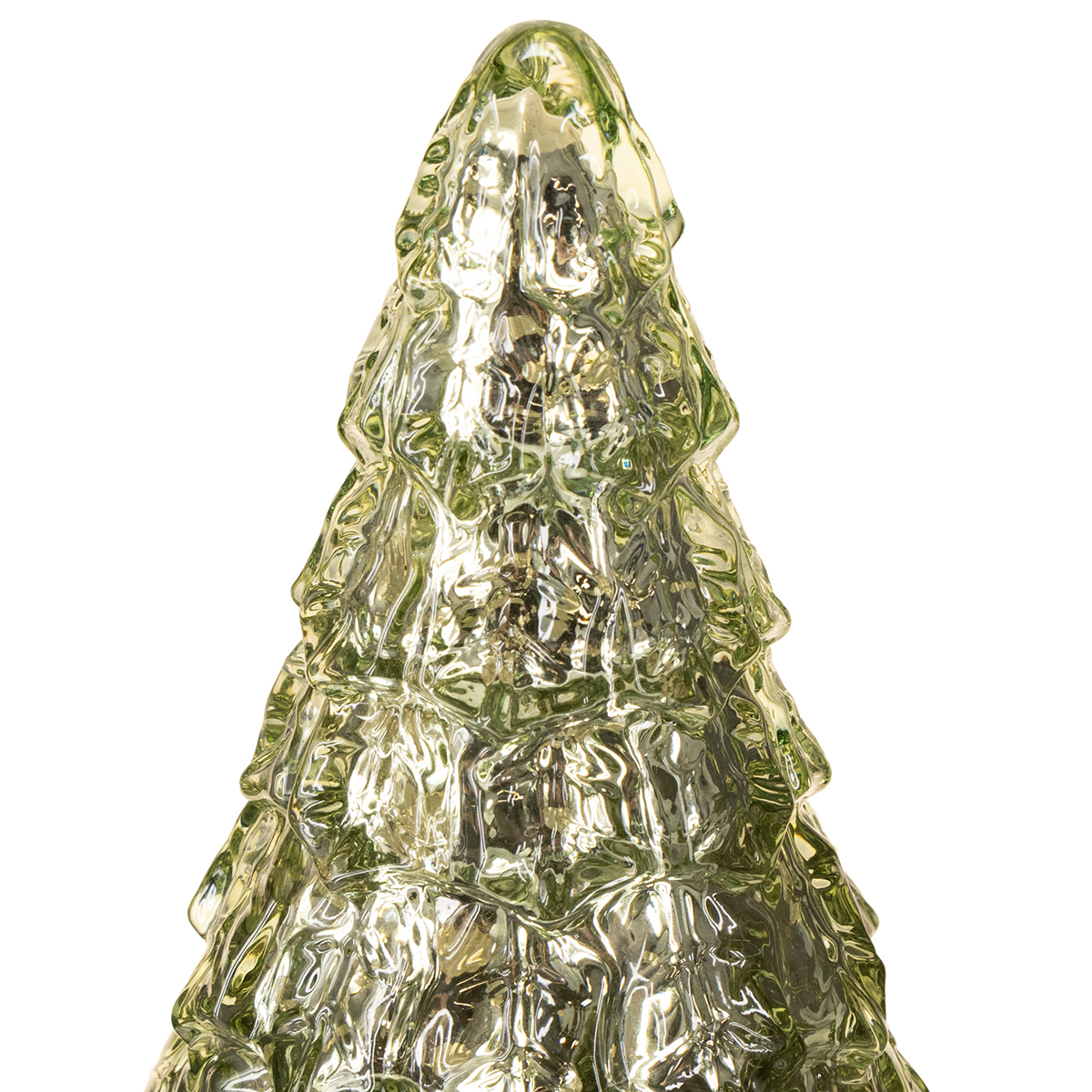 El cristal verde plateado con motas doradas y suaves reflejos de luz le confieren un encantador aire vintage. Con una altura aproximada de 28 cm y una robusta base de plástico con compartimento para pilas, se puede colocar fácilmente en cualquier lugar como decoración de mesa. Elegante, glamuroso y acogedor, este árbol de Navidad LED le da un toque navideño a tu hogar e iluminará cualquier estancia.