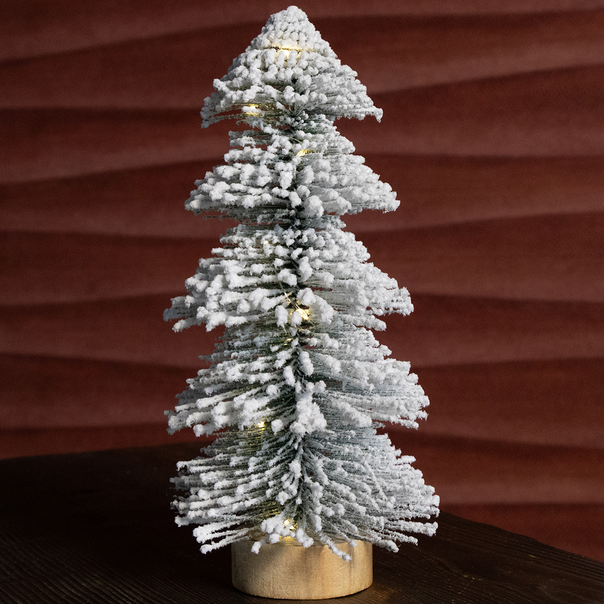Mini árbol de Navidad iluminado LED abeto con nieve 28cm