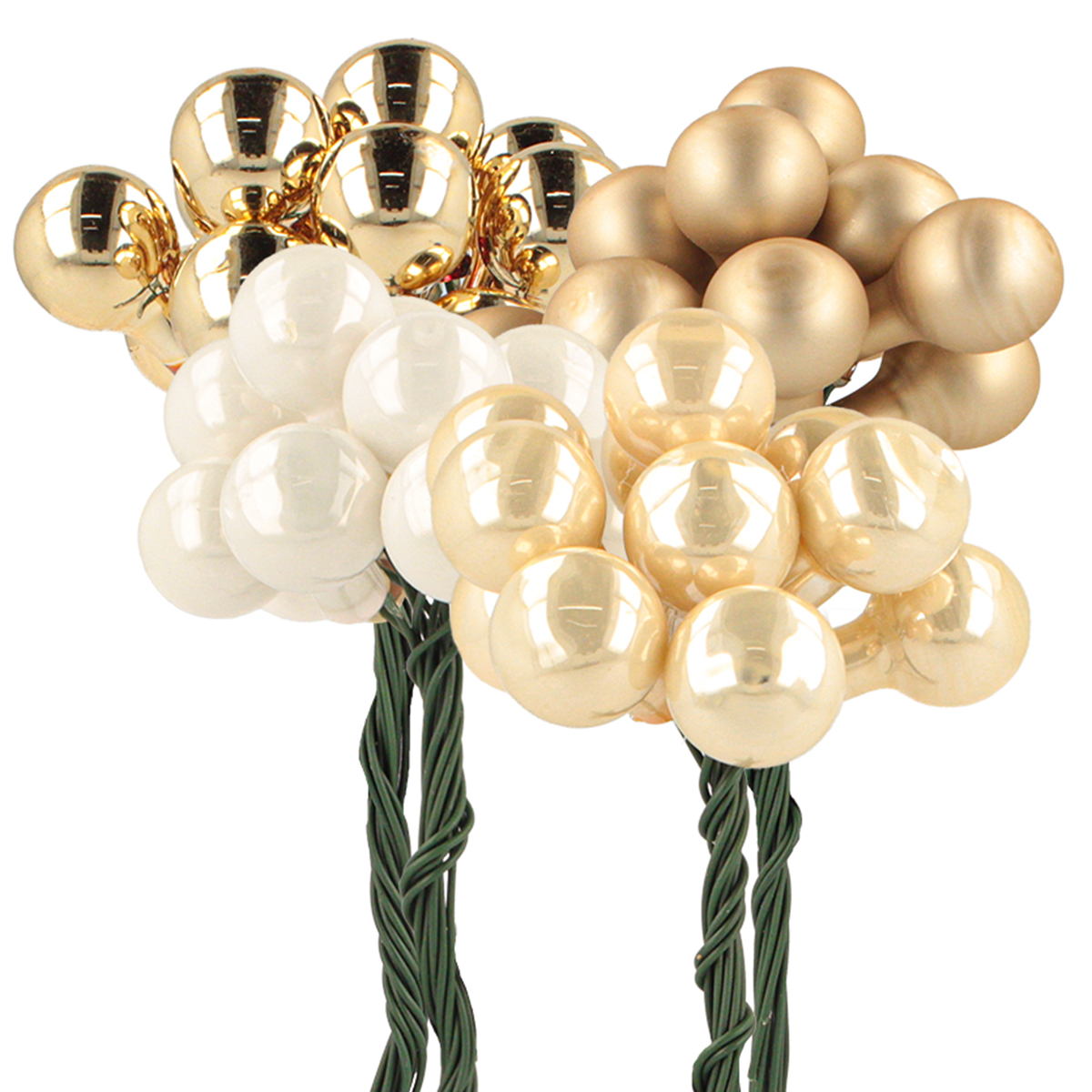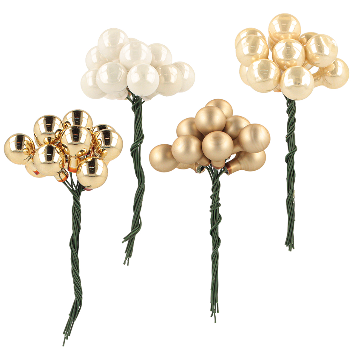 Mini bolas navideñas en alambre dorado, crema Ø1,5cm 140 uds