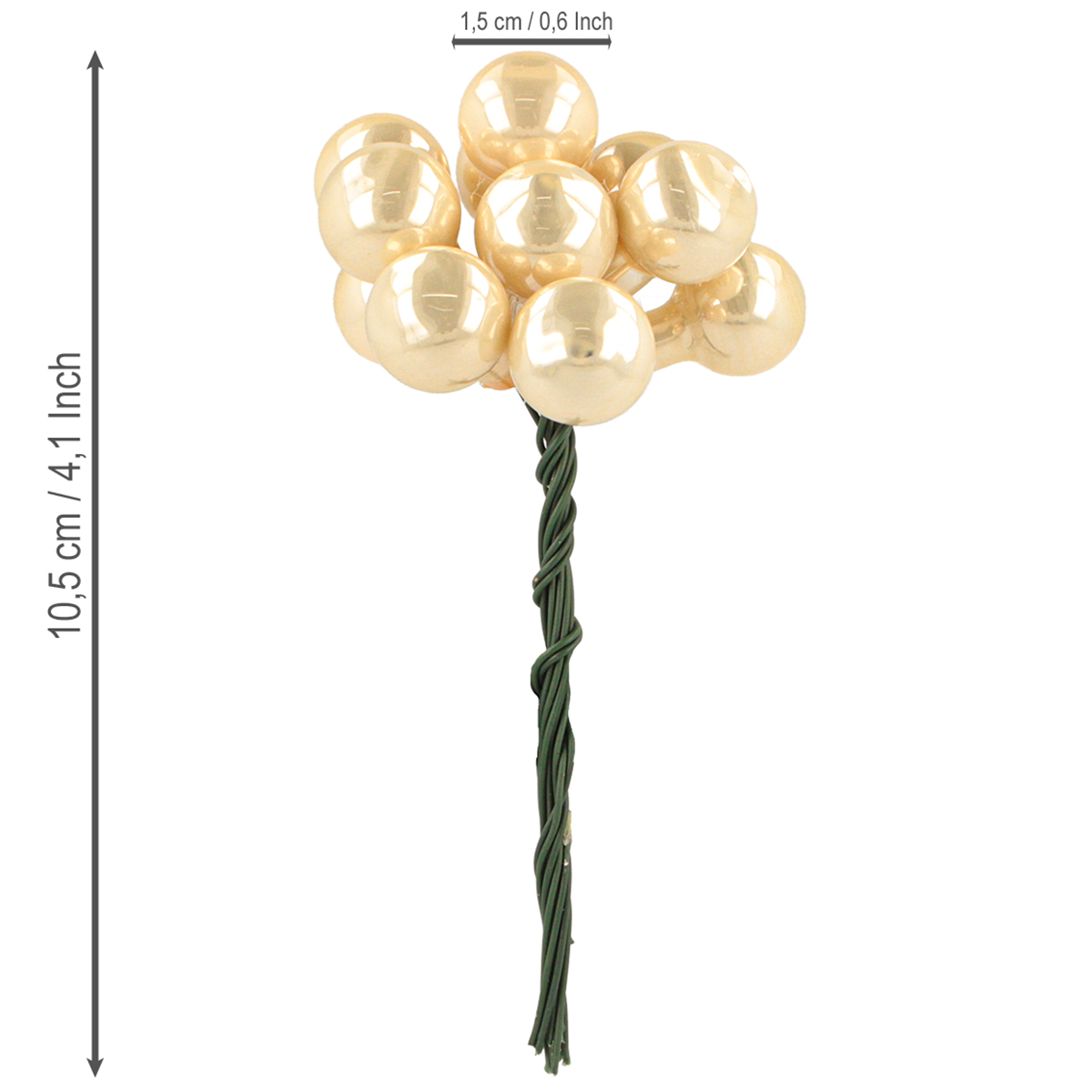 Las bayas de espejo están en una caja de 140 piezas. Cada bola tiene un diámetro de unos 1,5 centímetros, la longitud total con alambre es de unos 10,5 centímetros.